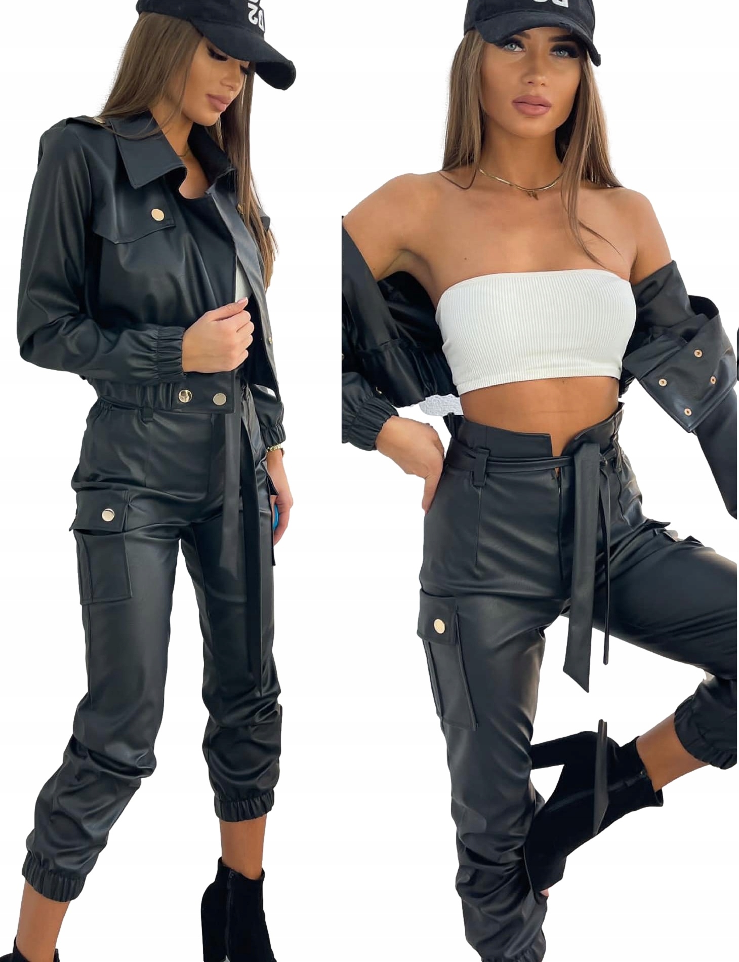 Оригинальные брюки-карго из эко-кожи с интересным кроем.