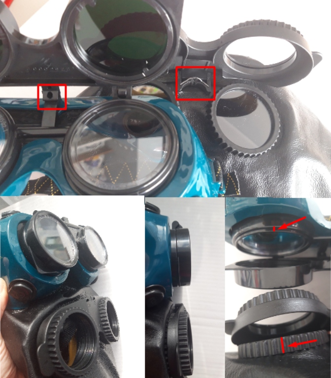 Крючок для открывания металлический, не работает как пластиковые аналоги. Передняя часть повреждена, несмотря на долгое использование. Очки «поглубже».