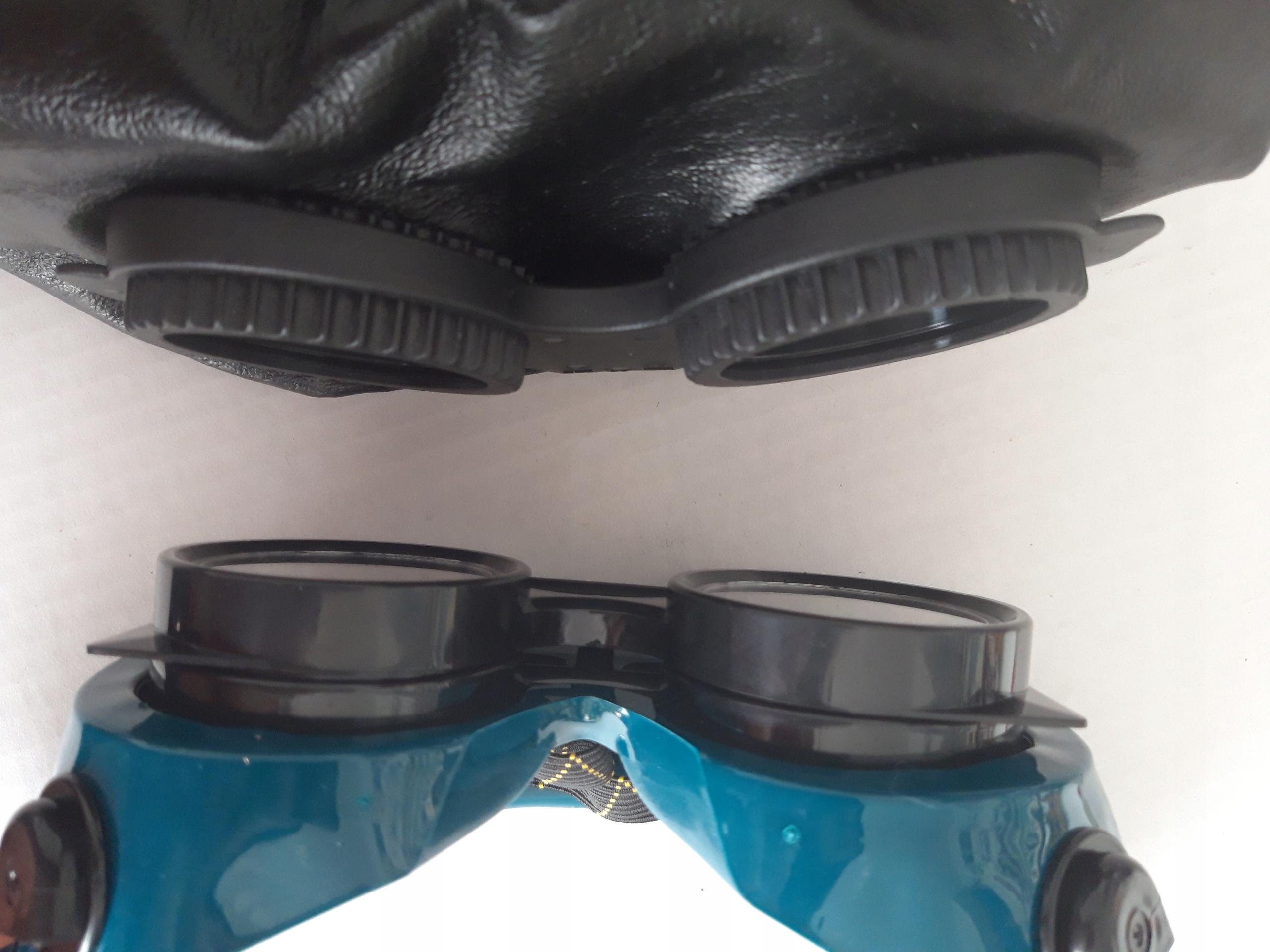Фото 1 — зеленые очки (дешевле) с пластиковым крючком, справа очки с металлическим крючком.