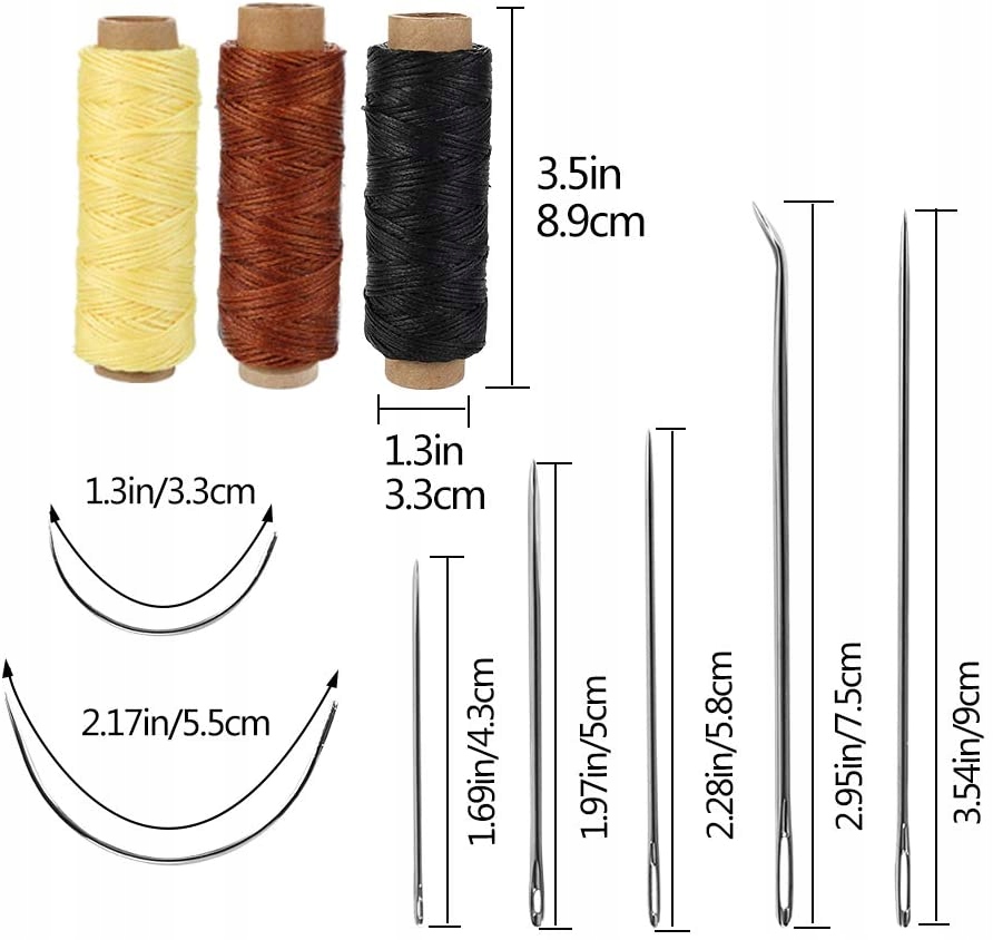 2 маркировочных диска (2 размеры) 3 вощеные нитки (55 ярдов) 4 дырокола (1/2/4/6)