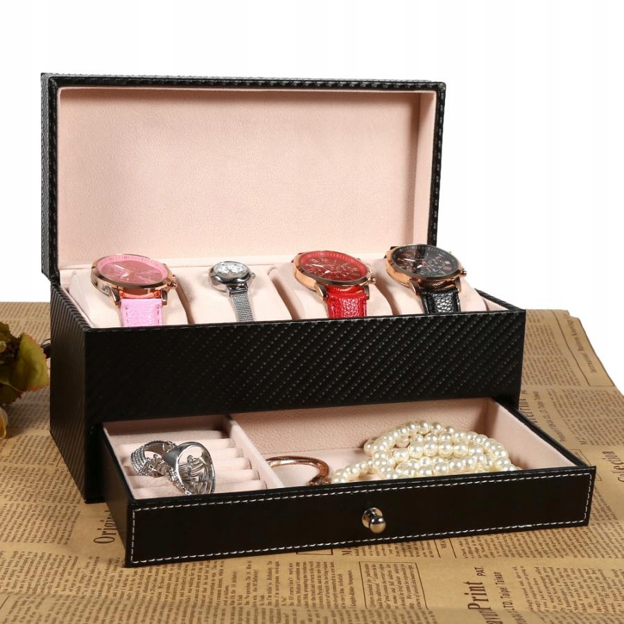 Шкіряний органайзер для ювелірних виробів - годинник із ящиком