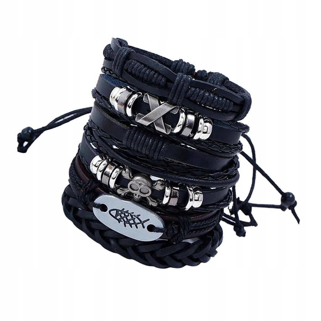 Кожаный плетеный браслет из 6 предметов, мужские ювелирные изделия в стиле панк, черный 1