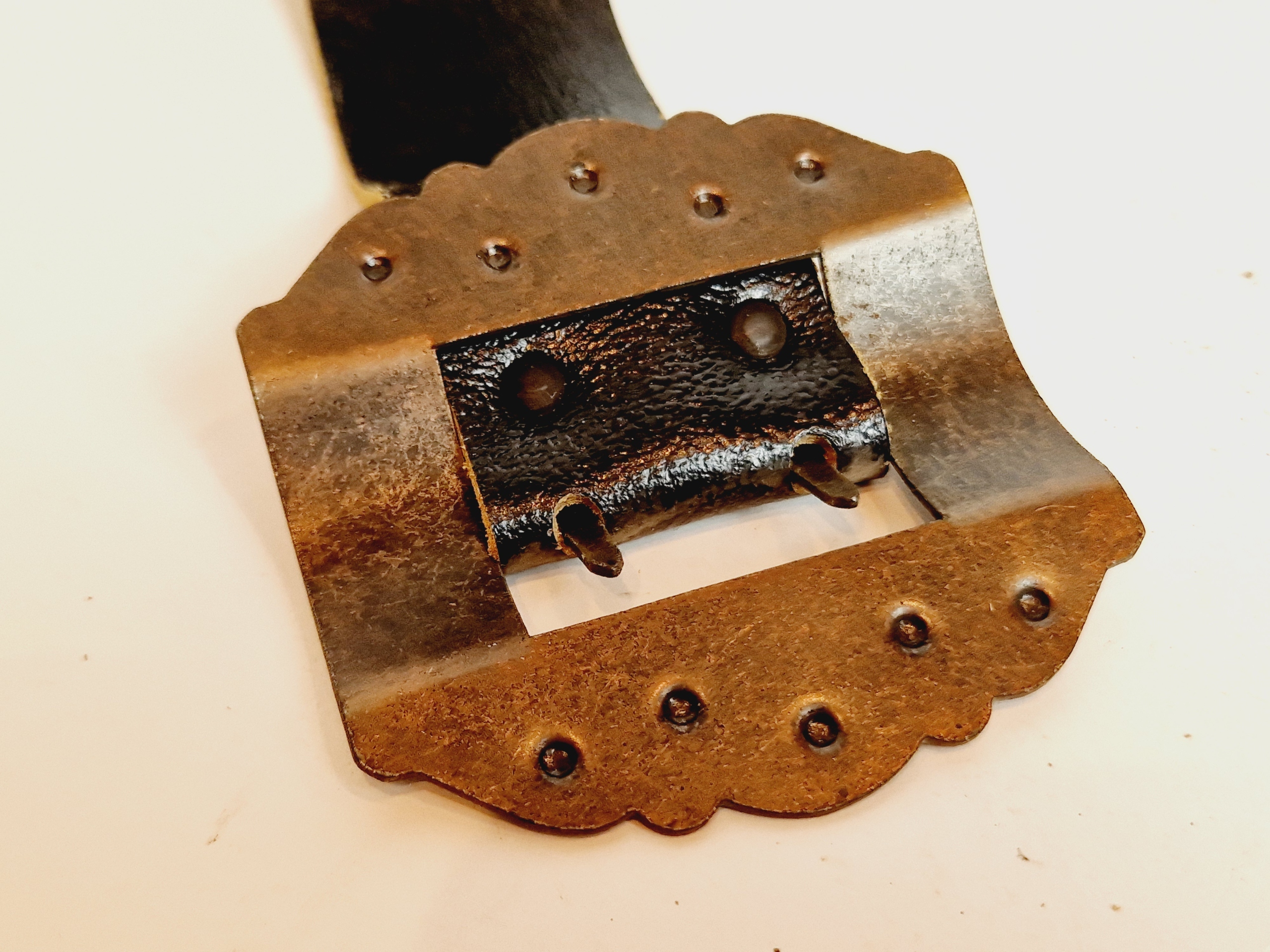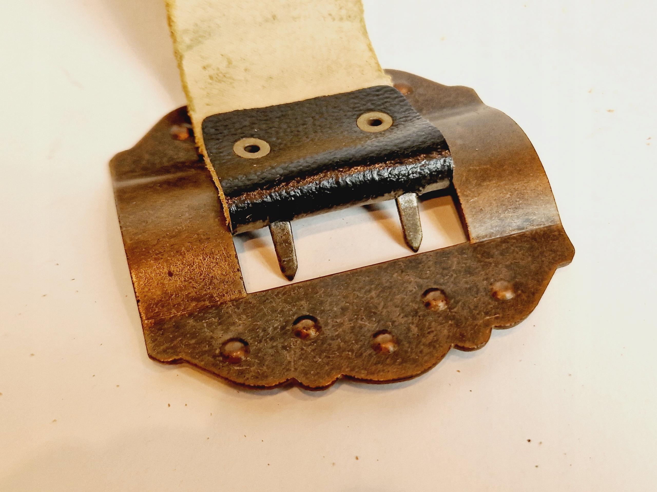 ремень из кожи - железо, медный зажим.