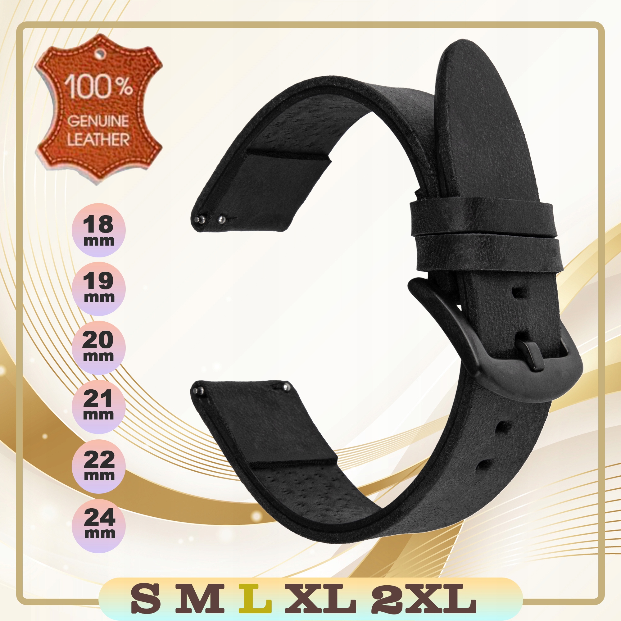 Кожаный ремень для 20 -миллиметровых часов, универсальный, размер L