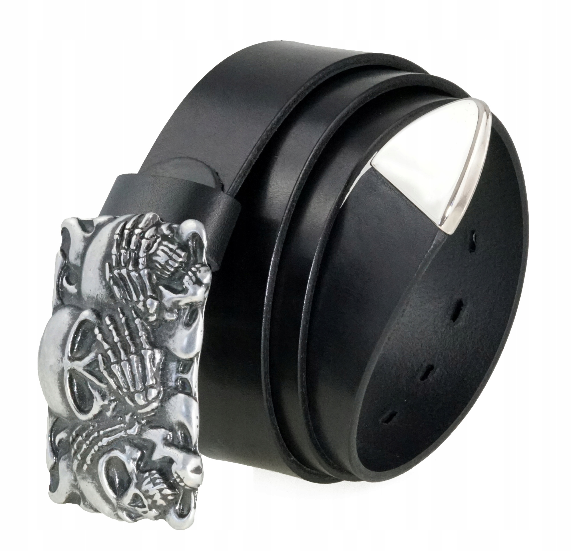 Черный гладкий ремень – это сочетание элегантности и свободы, которое подходит как мужчинам, так и женщинам. Ремень оснащен полноценной пряжкой с изображением черепа «Не слышу, не говорю, не вижу» и металлическим наконечником, что придает дизайну оригинальность и неповторимость. Идеально подходит для любителей двухколесного транспорта и не только.
