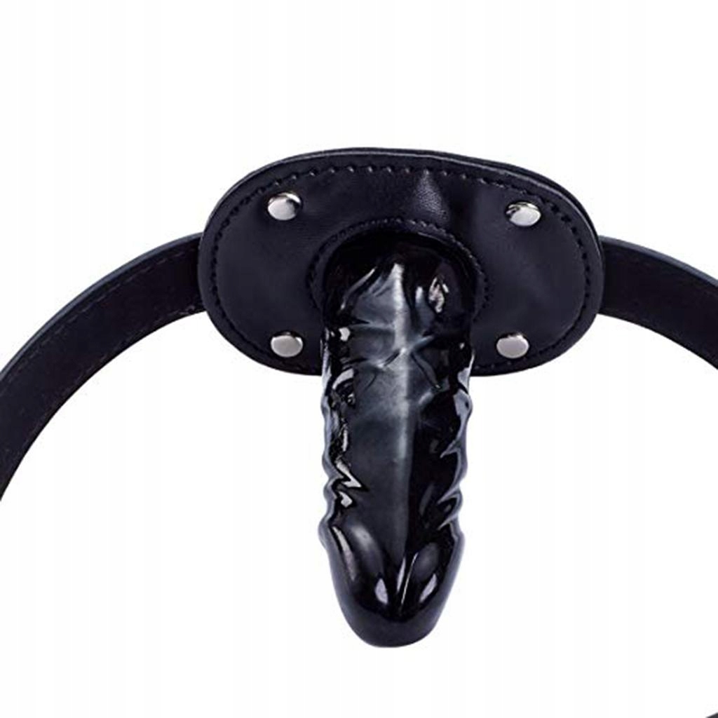 Фаллоимитатор с фиксатором, кляп для пениса, кожаный ремешок из искусственной кожи, секс-игрушка для взрослых, черная