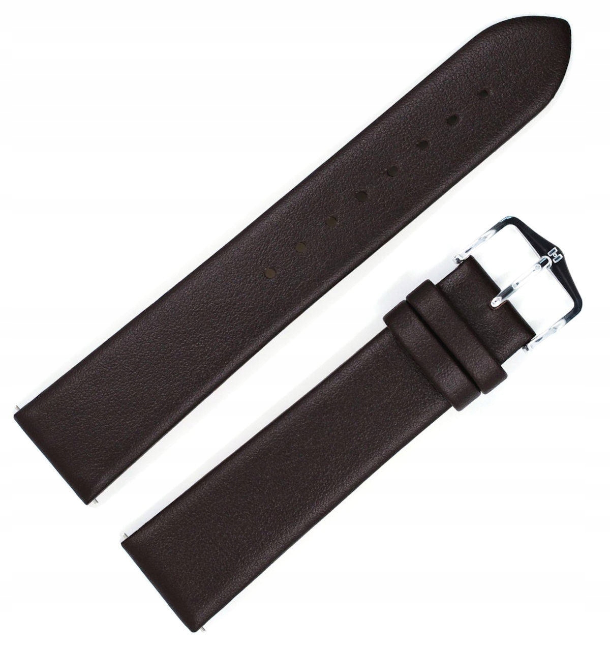 Коричневый кожаный, гладкий матовый, зауженный на 3 мм, вклеенный водонепроницаемый ремешок для часов HIRSCH TORONTO. Ширина 19 мм. Подходит ко всем часам со стандартным креплением шириной 19 мм. Телескопы в комплекте.