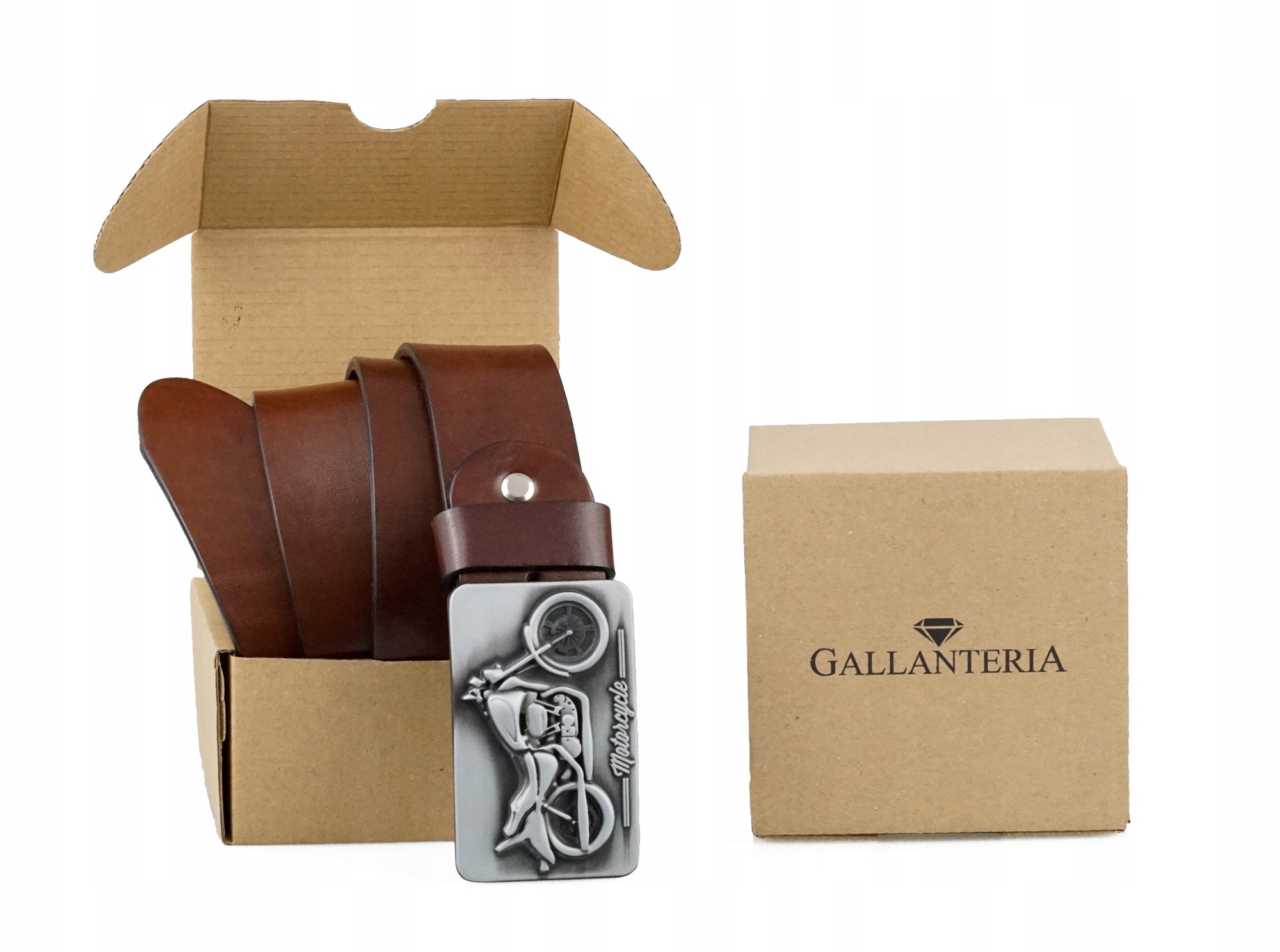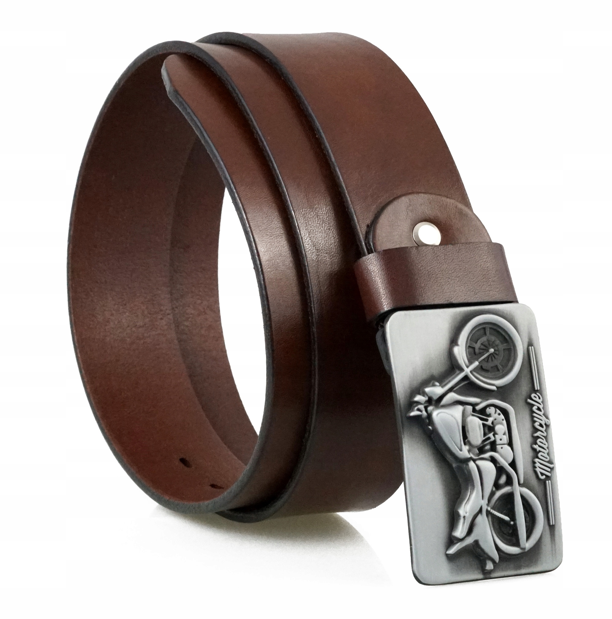 КОЖАНЫЙ РЕМЕШОК ДЛЯ БРЮК 4 СМ КОРИЧНЕВЫЙ МОТОЦИКЛИСТ