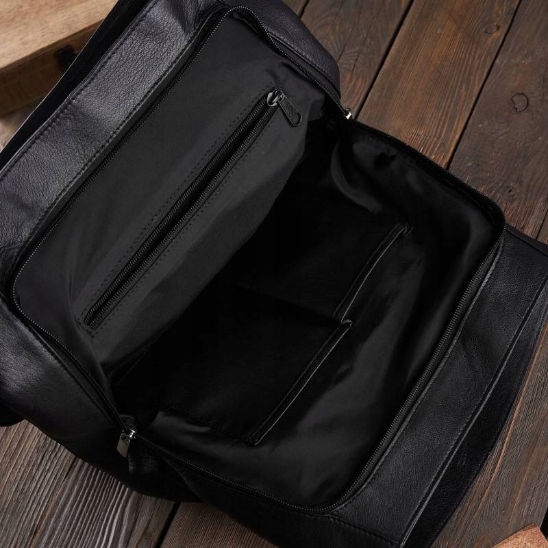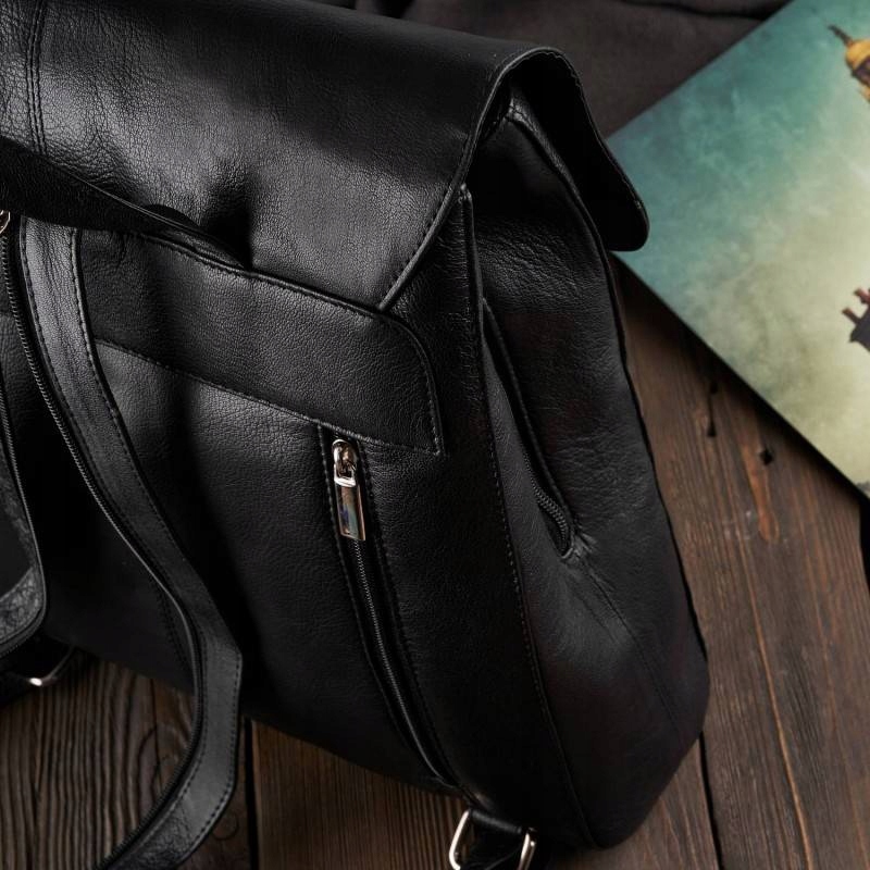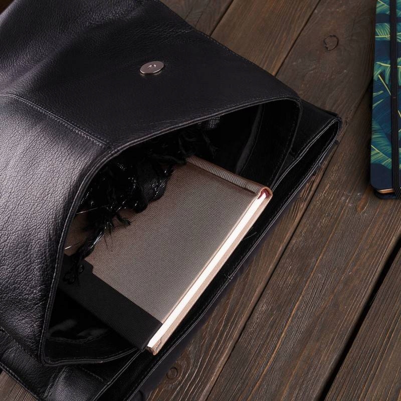 Большой женский рюкзак T-72 выполнен из мягкой на ощупь натуральной лицевой кожи черного цвета. Под клапаном на магнитных кнопках расположены два основных отделения и глубокий карман на молнии. Внутри два накладных кармана (один для телефона) и карман на молнии. Дополнительное место для хранения обеспечивает задний вертикальный карман. Рюкзак удачно вмещает формат А4, что делает его подходящим для работы или учебы.