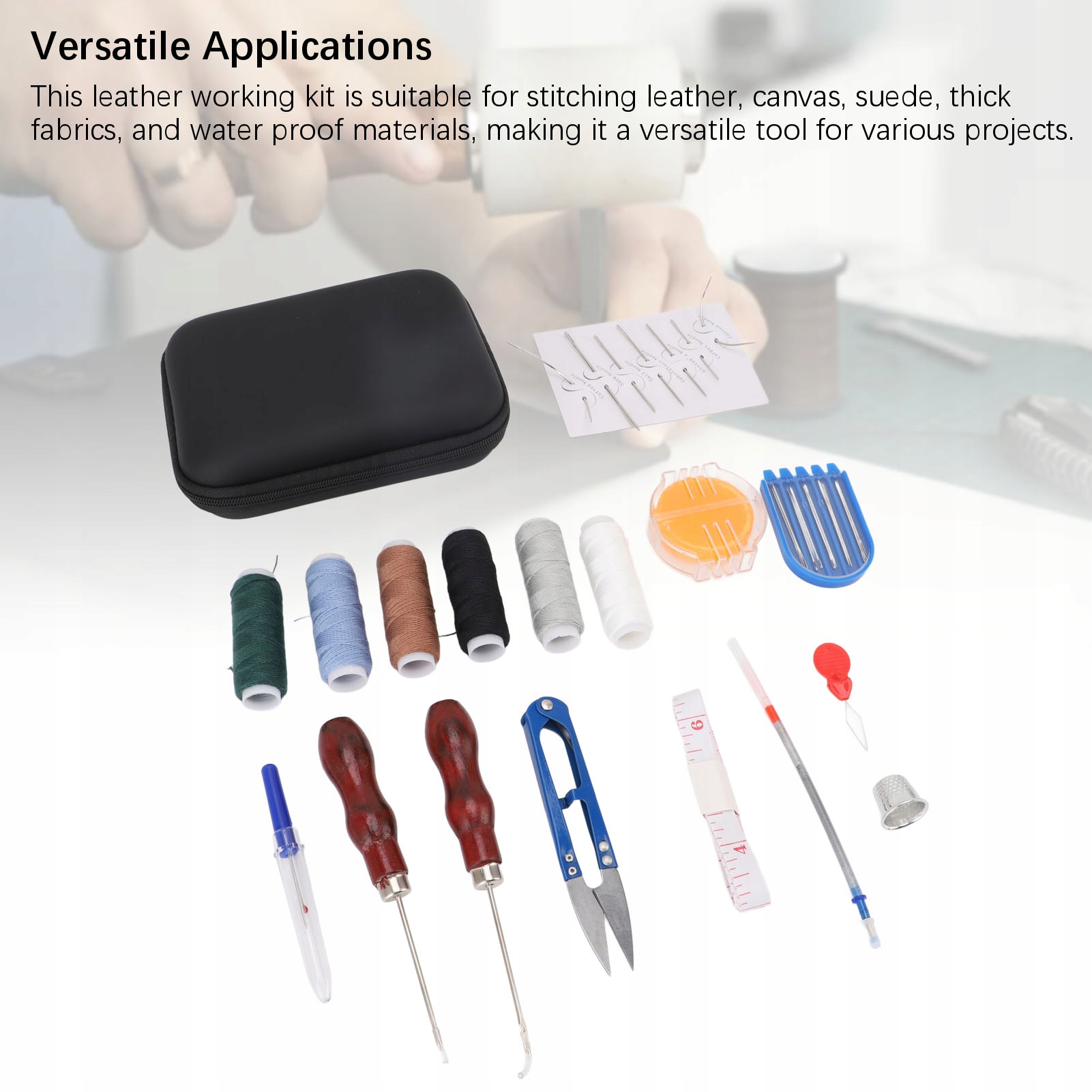 5. Универсальное применение: этот кожаный рабочий комплект подходит для сшивания кожи, холста, замши, толстых материалов и водоснабжения, что делает его универсальным инструментом для различных проектов.