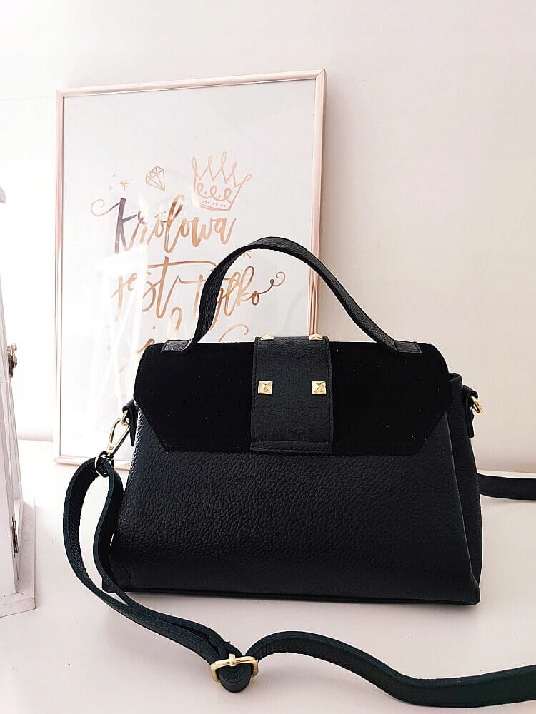 Итальянская сумка-сундук из коллекции Massimo Contti выполнена из высококачественной натуральной замши и кожи черного цвета.