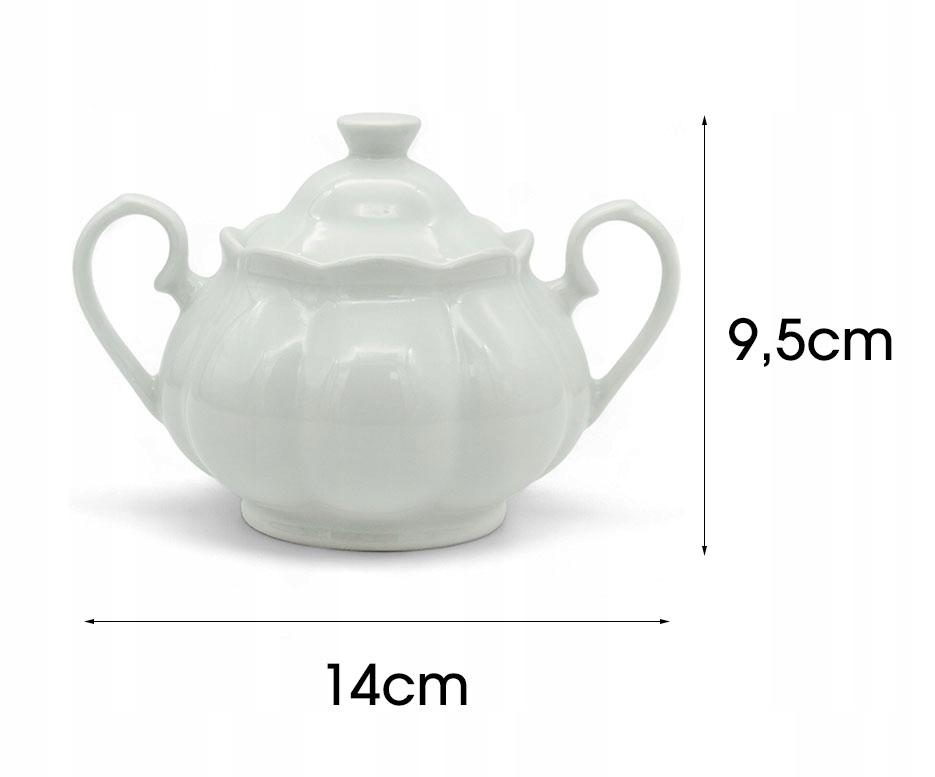 фарфоровая сахарная чаша с крышкой и двумя ручками является элегантным элементом посуды, идеально подходит для подачи сахара во время встреч с чаем или кофе. Ее закругленная форма и прессованная отделка придают ей классический вид , который подходит как современные, так и традиционные таблицы. две ручки по бокам облегчают удобную передачу сахарной чаши, обеспечивая при этом симметрию и эстетику сосуда. крышка с тонкой ручкой защищает содержание от влаги и загрязнения, а его точное соответствие подчеркивает высокое качество изготовления.