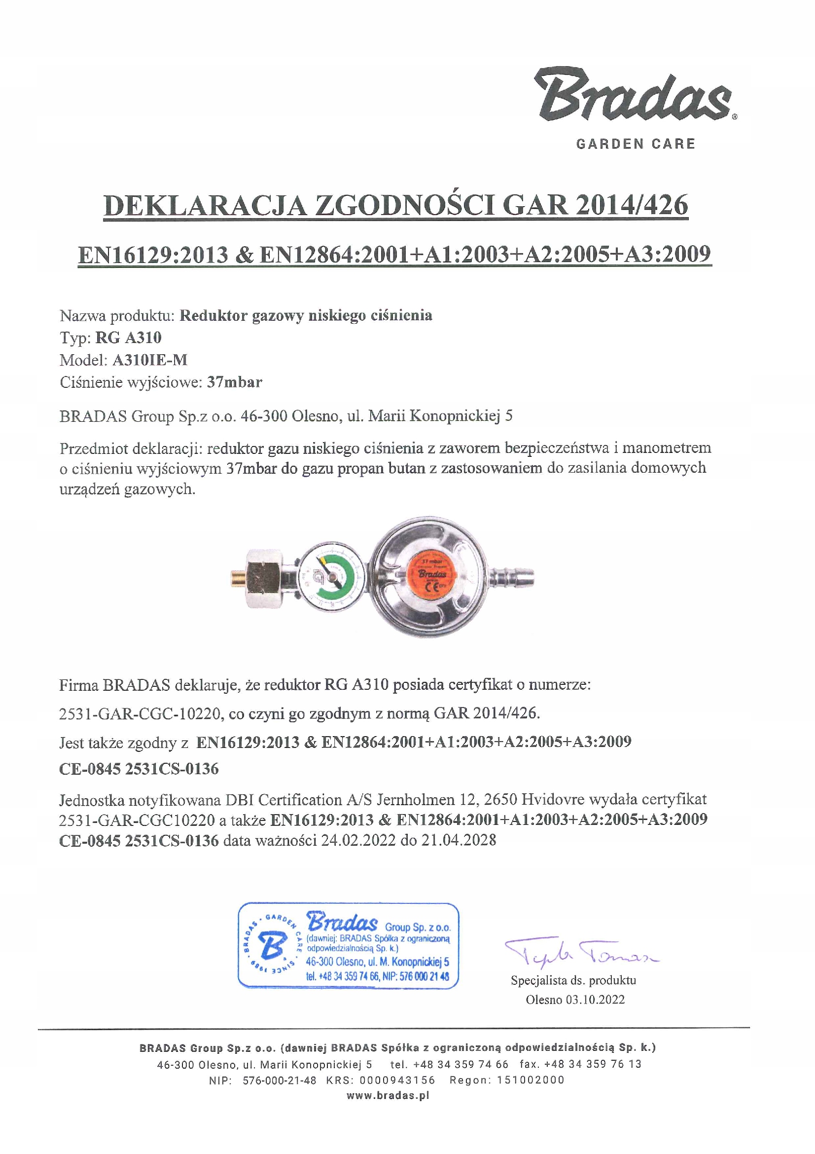 Газовый регулятор предназначен для домашнего использования и соответствует стандарту EN16129. Используется для баллонов любого типа, оснащенных клапаном с ручным открытием и соединением 21,8 х 1,14 л.