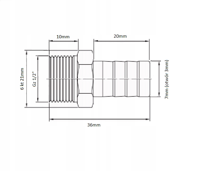 НИПЕЛЬ, СОЕДИНИТЕЛЬ GZ 1/2" ДЛЯ ШЛАНГА 6 ММ С ШЕСТИГРАННИКОМ С КЛЮЧОМ - ПОЛЬСКИЙ ИЗДЕЛИЕ