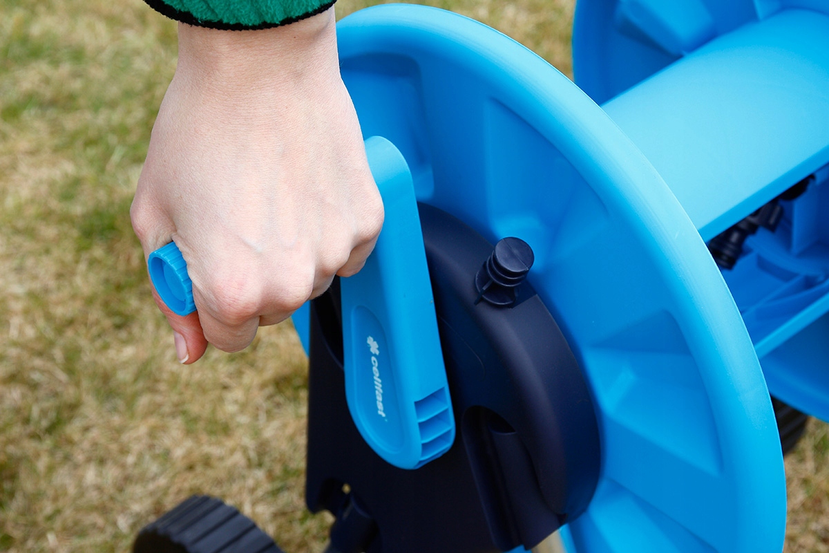 Дополнительным преимуществом является внутренний диагональный быстроразъемный разъем для шланга, который предотвращает перекручивание и запутывание. во время намотки и размотки. Тележка подходит для всех типов садовых шлангов.