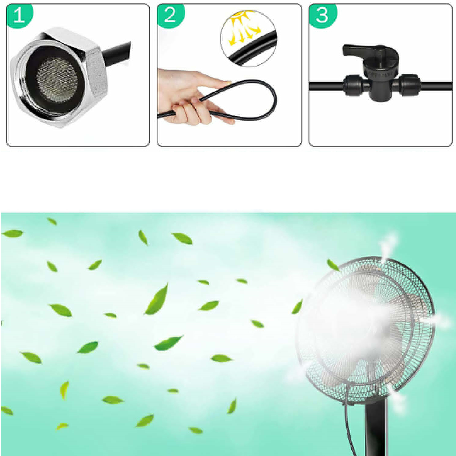 ✅Эксклюзивный шаровой клапан на трубке тумана позволяет легко запускать/останавливать распыление тумана или устанавливать необходимое количество потока, необходимое для охлаждения (убедитесь, что садовый кран включен).