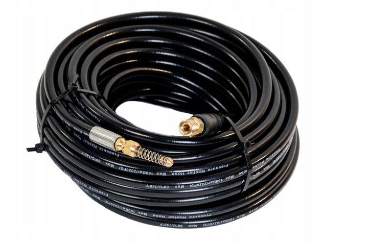 Шланг длиной 25 метров с насадкой используется для очистки канализационных систем, желобов, каналов, труб.