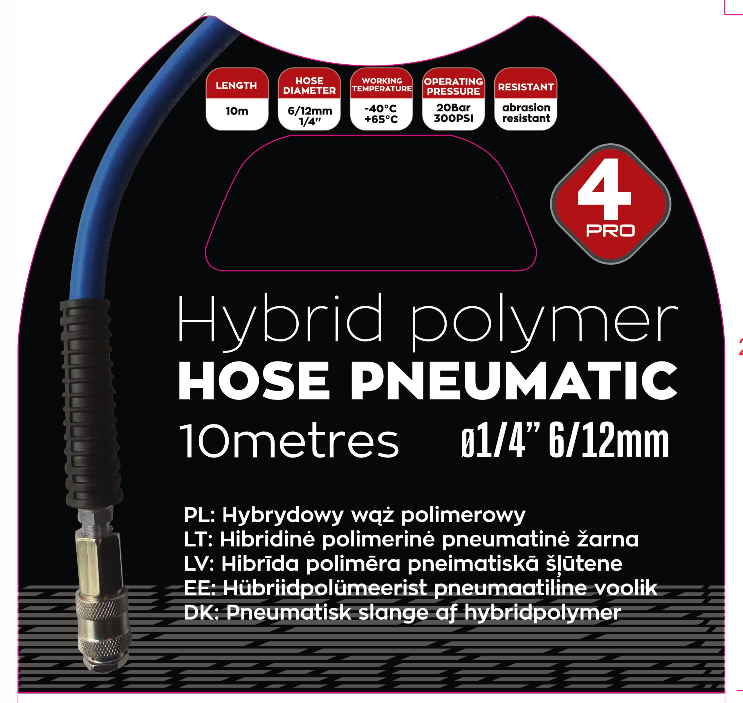 Высокое качество изготовления: пневматический шланг 4PRO создан для профессионального применения. Прочная конструкция и высококачественные материалы гарантируют надежность и долговечность.