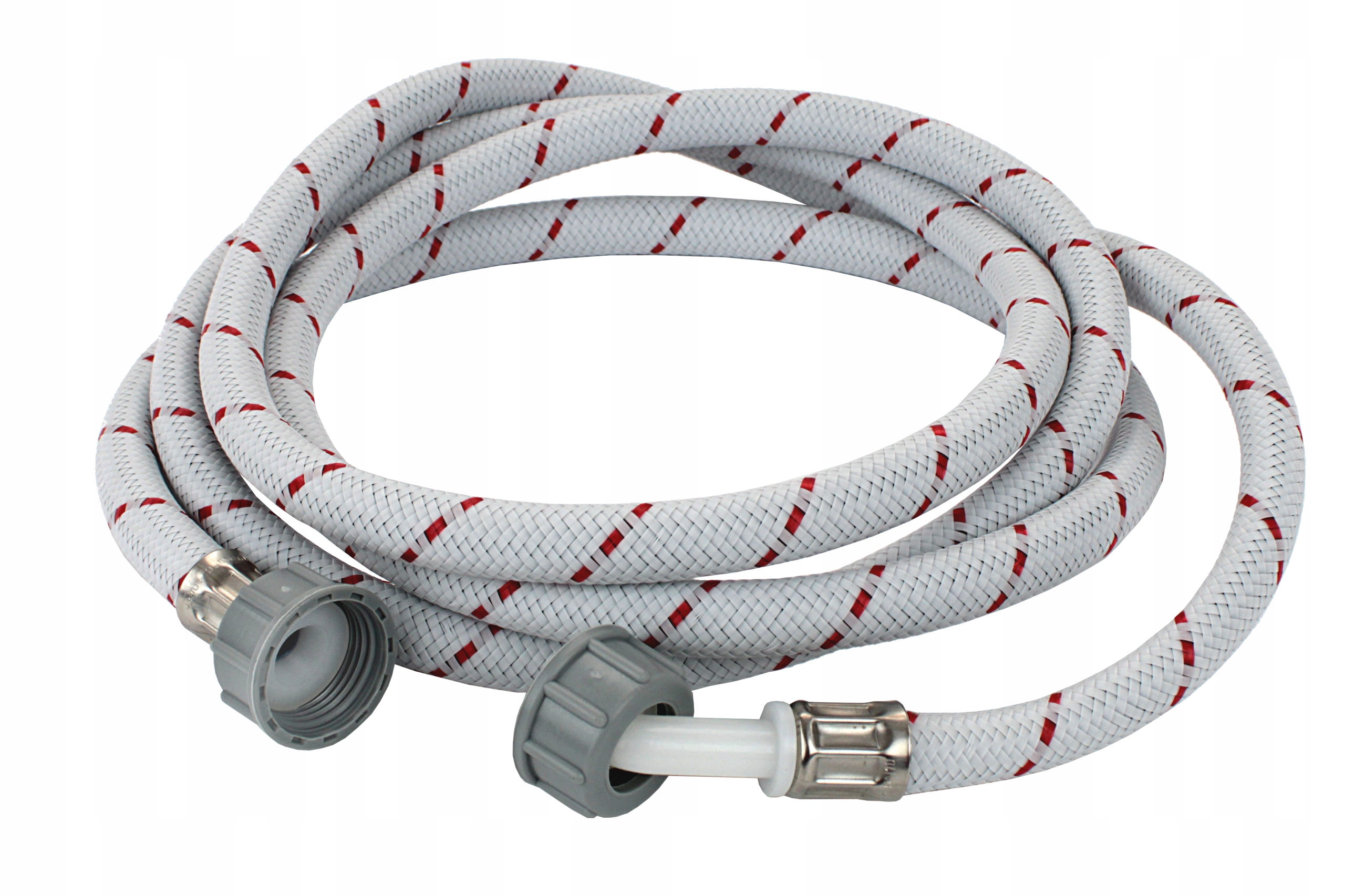 Шнур питания в нейлоновой оплетке предназначен для подключения бытовой техники, такой как стиральная или посудомоечная машина, к водопроводной сети. Обращает на себя внимание цвет шланга. шланг, имеющий оттенок, близкий к белому цвету подключаемых устройств. Благодаря скошенному наконечнику шланг не выступает из стиральной/посудомойки, что позволяет легко расположить устройство и спрятать Прокладки на концах исключают необходимость дополнительной герметизации.