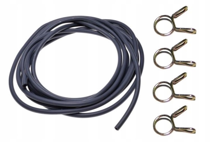 Трос, резиновый шланг для топлива, масла и вакуума диаметром Fi 6 мм и 4 хомута