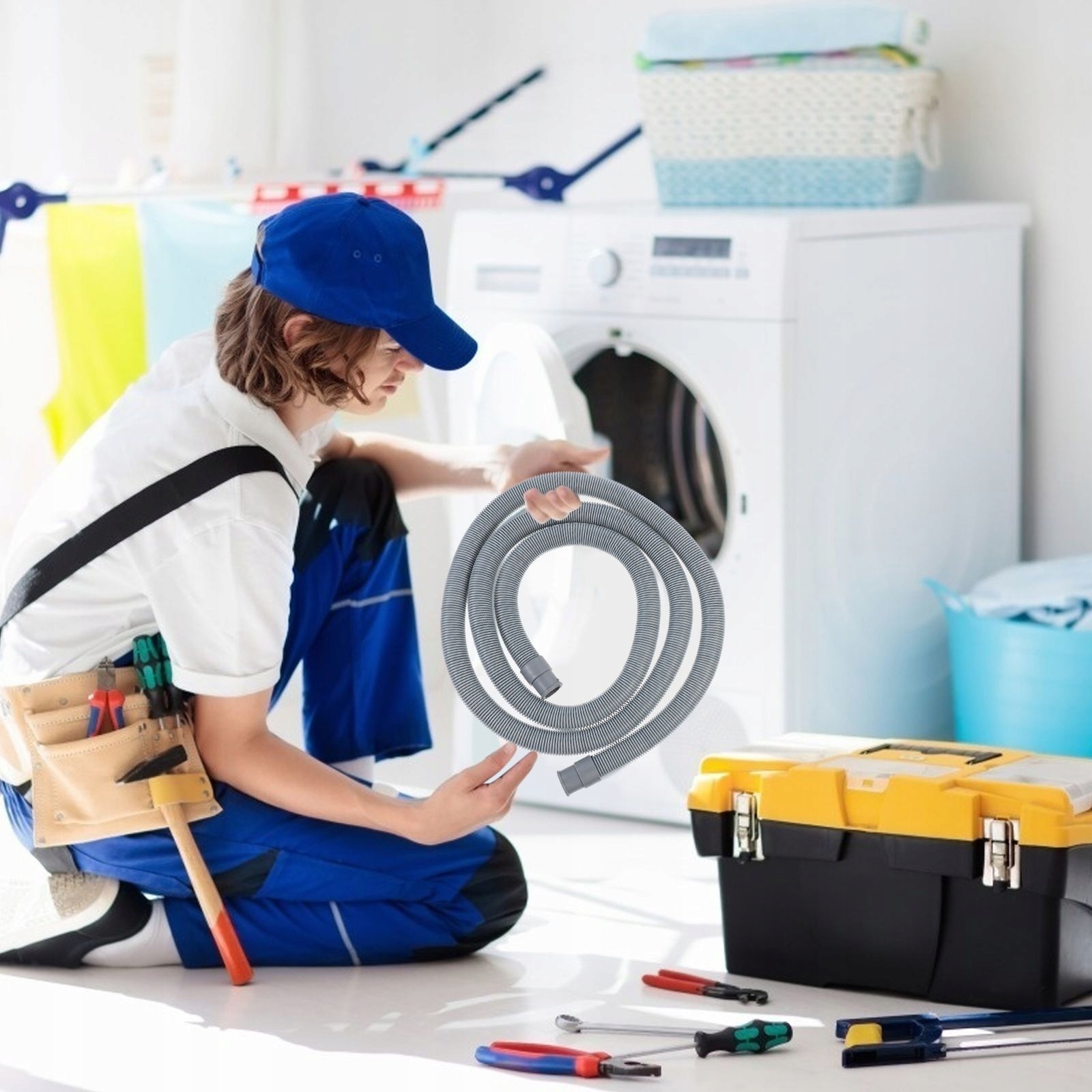 ✅Ваша стиральная машина идеально разместилась бы в углу ванной комнаты, но сливной шланг слишком короткий? Чтобы сохранить гибкость без необходимости перемещать стиральную машину, для вас есть отличное решение: удлинитель сливного шланга.