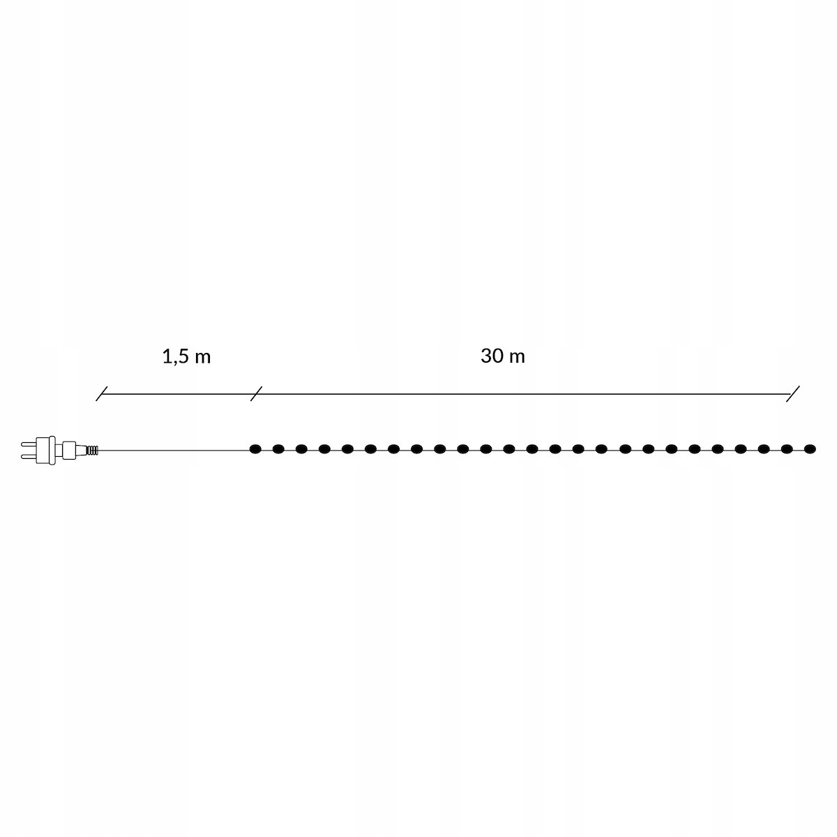 - Длина комплекта: 31,5м (светящая секция 30м + кабель + вилка)