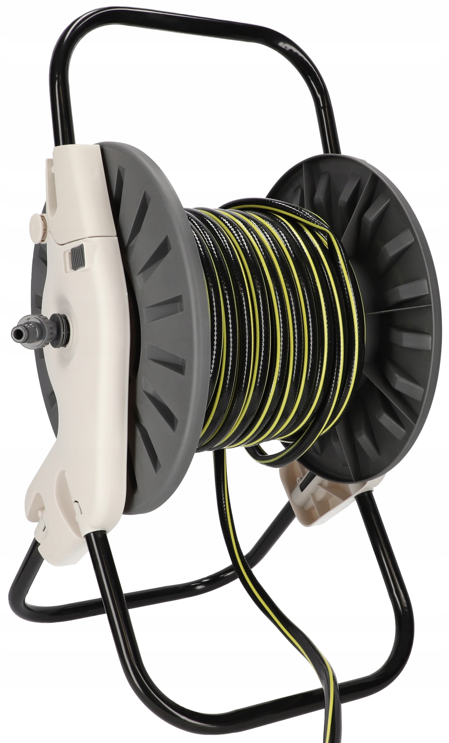 - Барабан работает легко, устойчив и оснащен прочными ножками, которые выдерживают вес шланга, поэтому его не нужно переносить.