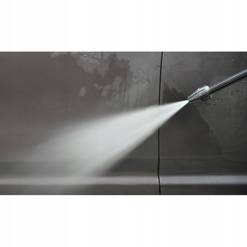Комплект оснащен насадкой с плавной регулировкой струи. Благодаря этому можно установить плоскую струю с широким углом и высокой эффективностью поверхности или точечную, идеально подходящую для удаления сильных загрязнений.
