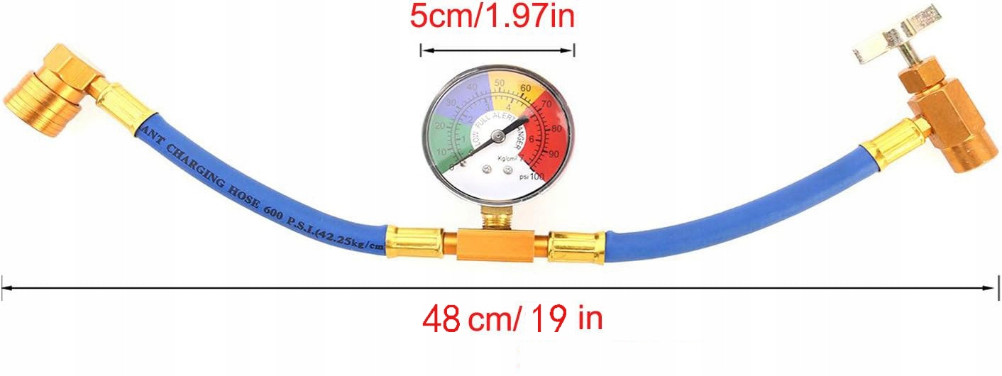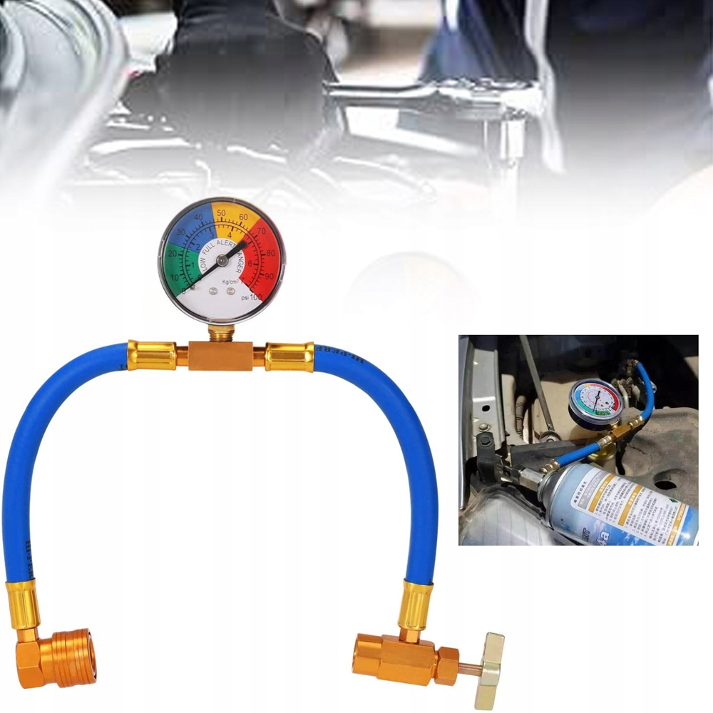 Шланг для заправки хладагента R134A оснащен манометром, который облегчает просмотр во время использования. Он отличается прочной конструкцией и максимальной долговечностью.