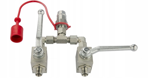 - Включает в себя: два цилиндра Brzeg, два пружина, два гидравлических кабеля с длиной 1,5 м и дистрибьютором с двумя шариковыми клапанами с быстрым подключением европейской штепестки и пылевой крышкой.