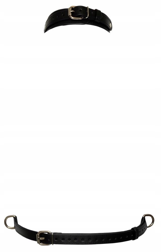 Нагрудный ремень Bad Kitty из стильной черной кожи с серебристыми металлическими деталями. Прочный, регулируется пряжками для размеров S-L. Манжета на шее и ремень под грудью с прочным D-образным кольцом с декоративными заклепками спереди для дополнительных неотразимых аксессуаров или чего-то подобного.