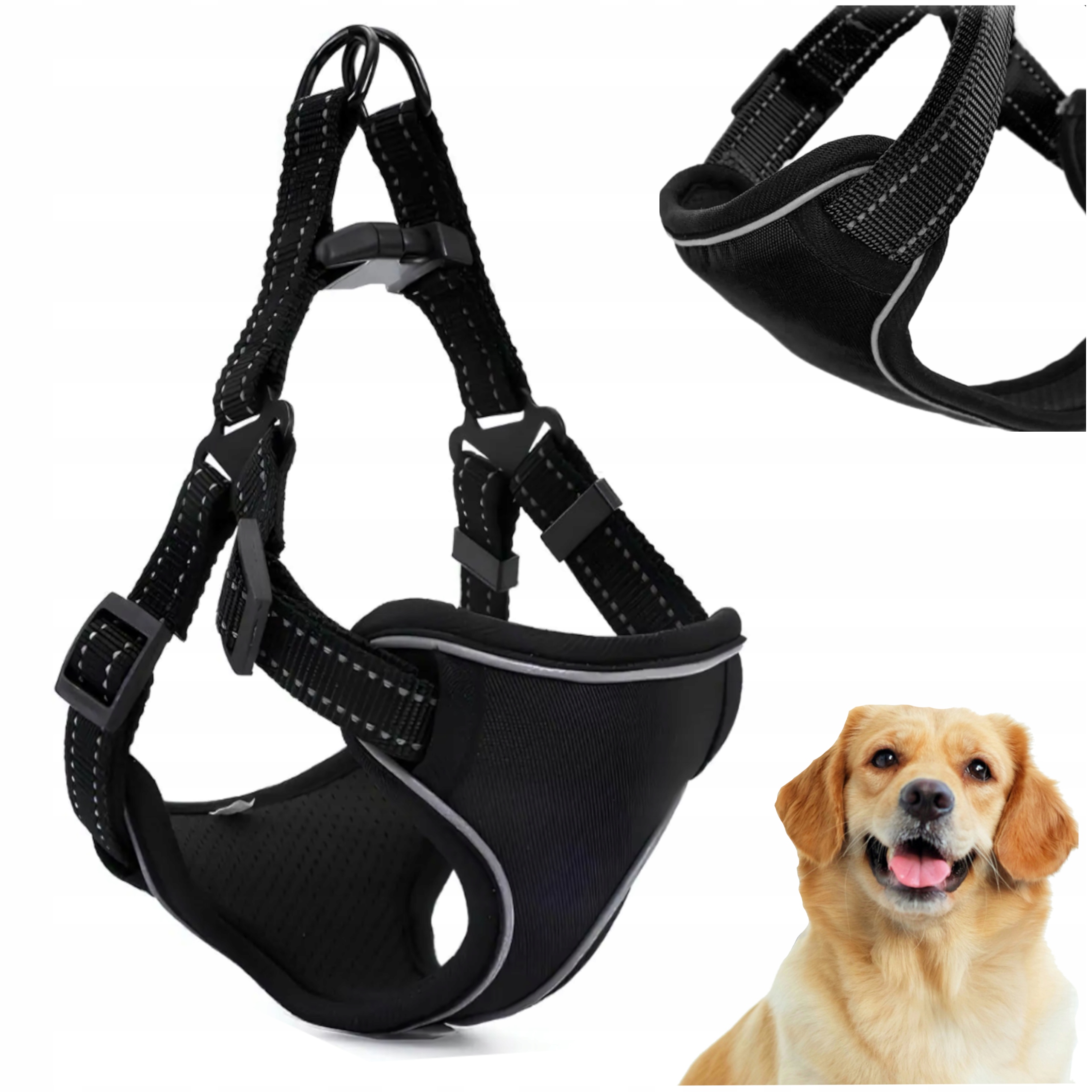 ✅ Прочная и прочная шлейка для выгула собак, регулируемая.