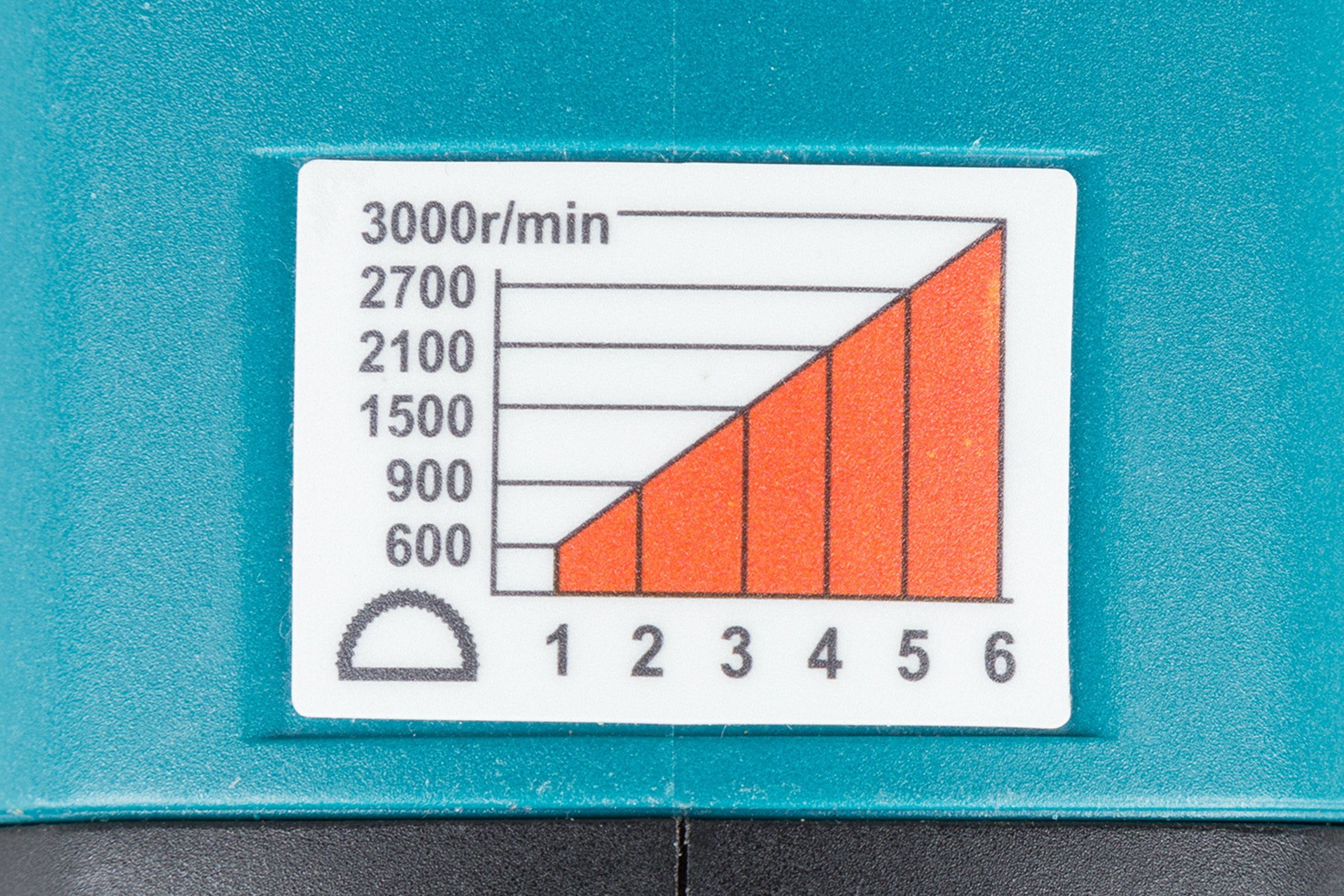 6-ступенчатая регулировка скорости позволяет еще лучше контролировать устройство и делает его очень универсальным инструментом как для полировки, так и для шлифовки. Регулятор позволяет получить минимальную скорость 600 об/мин, что делает полировальную машинку идеальной как для предварительной полировки поверхности, так и для ее окончательной отделки.