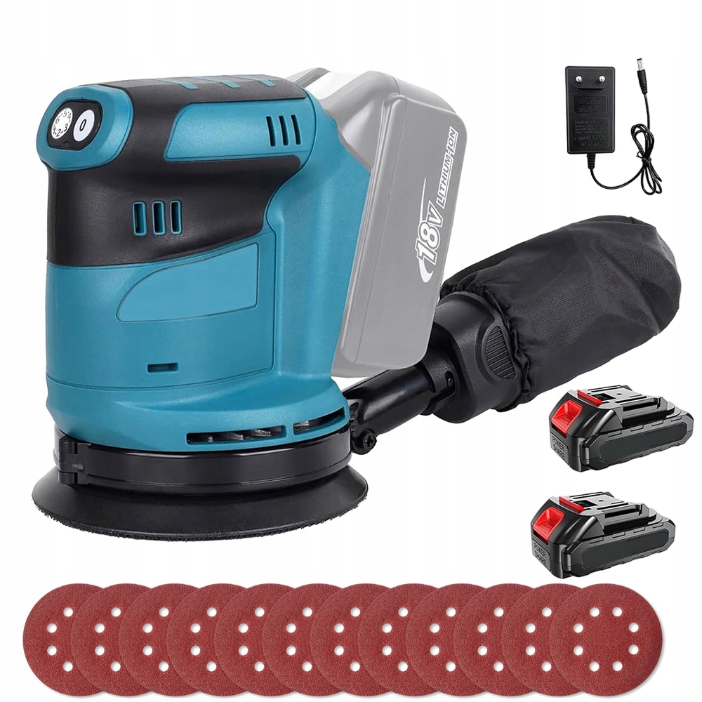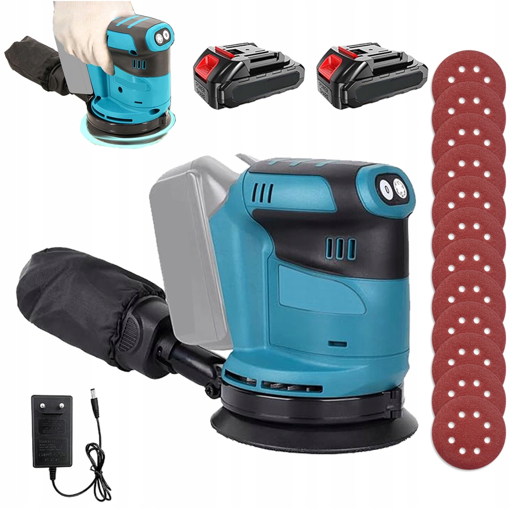 ЭКСЦЕНТРИЧЕСКАЯ ШЛИФОВАЛЬНАЯ МАШИНА 125 мм С РЕГУЛИРОВКОЙ 12 БУМАГ 2 АККУМУЛЯТОРА