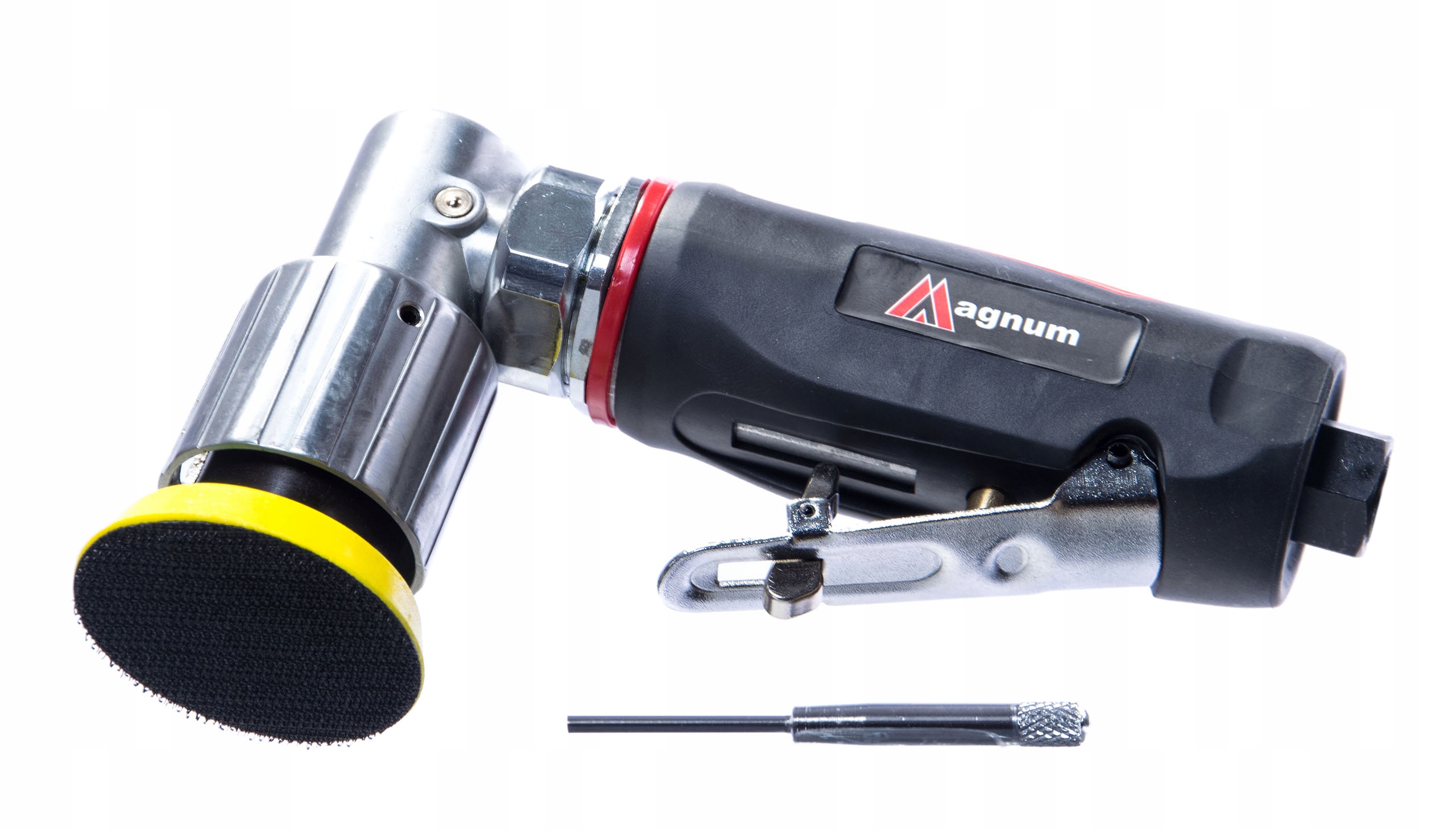 Пневматическая эксцентриковая шлифовальная машина MAGNUM. В комплект также входит диск диаметром 50 мм на липучке и сервисный ключ.