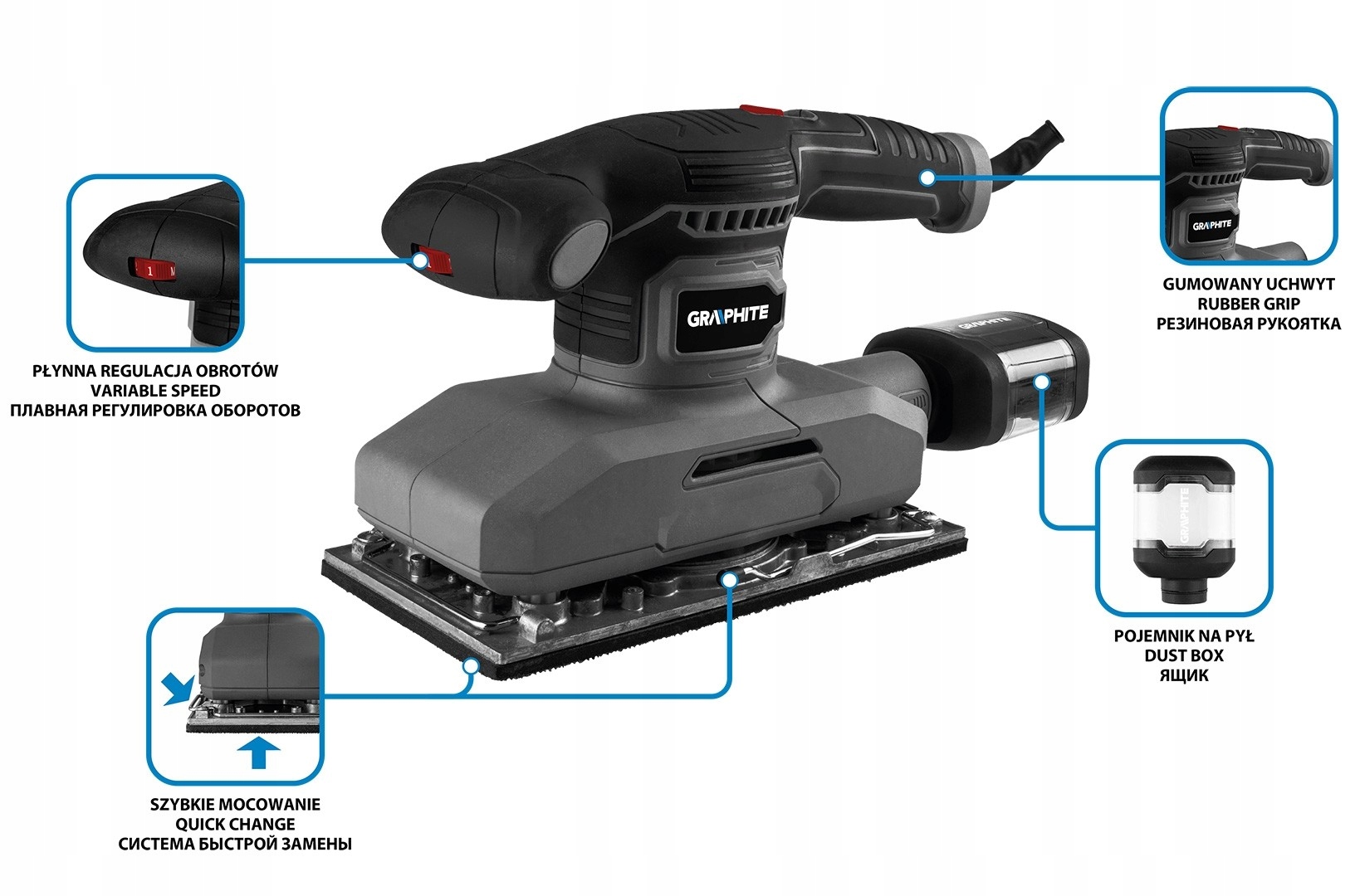 Шлифмашинка орбитальная 380 Вт, база 115 х 230 мм 59G329 ГРАФИТ — инструмент для сглаживания и сухой полировки поверхностей. Подходит для обработки и очистки поверхностей различной твердости и структуры.