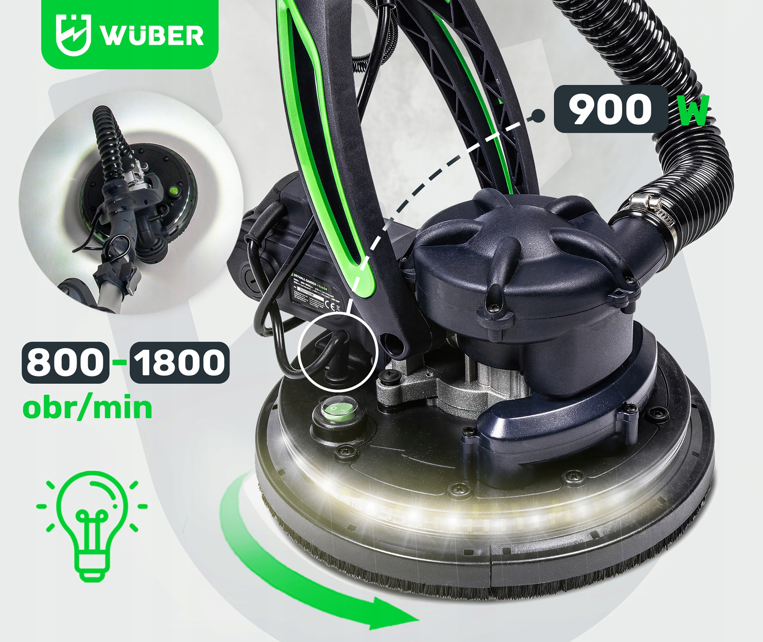интегрированная светодиодная лампа расположена вокруг шлифовальной головки, эффективно освещая рабочую поверхность, даже в более темных комнатах или на работе вечером. Это решение значительно улучшает видимость незначительной неравномерности и позволяет еще более точно сглаживать.