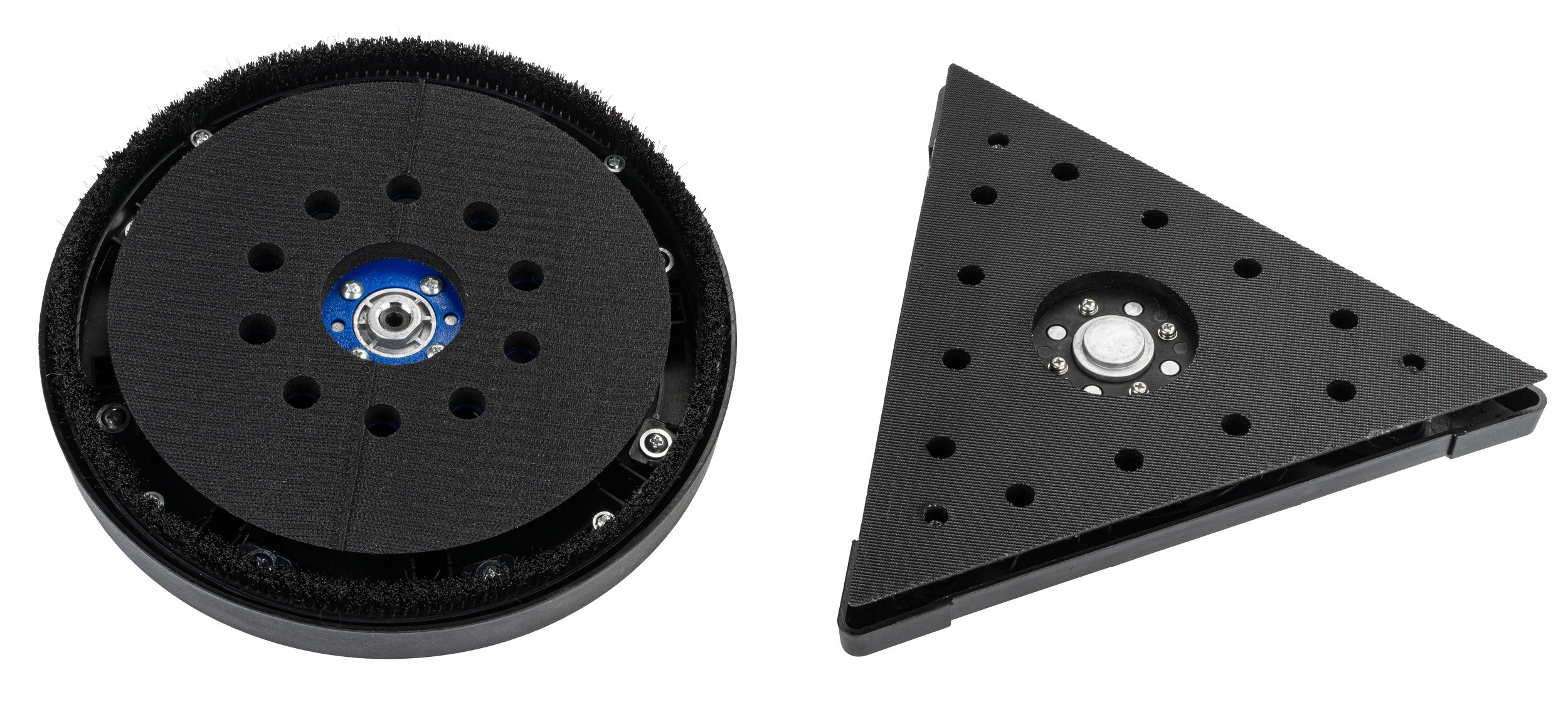 Шлифовальная машина оснащена двумя головками, треугольной и круглой, которые легко заменяются.