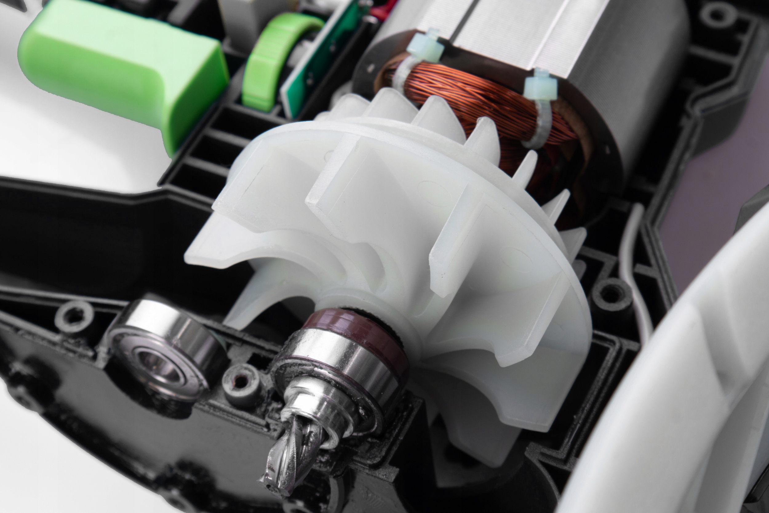 ✔ Когда двигатель работает, он создает вращательное движение. Затем крыльчатка передает вращательное движение шлифовальному диску, а двойная шестерня направляет пыль непосредственно в туннель пылеудаления