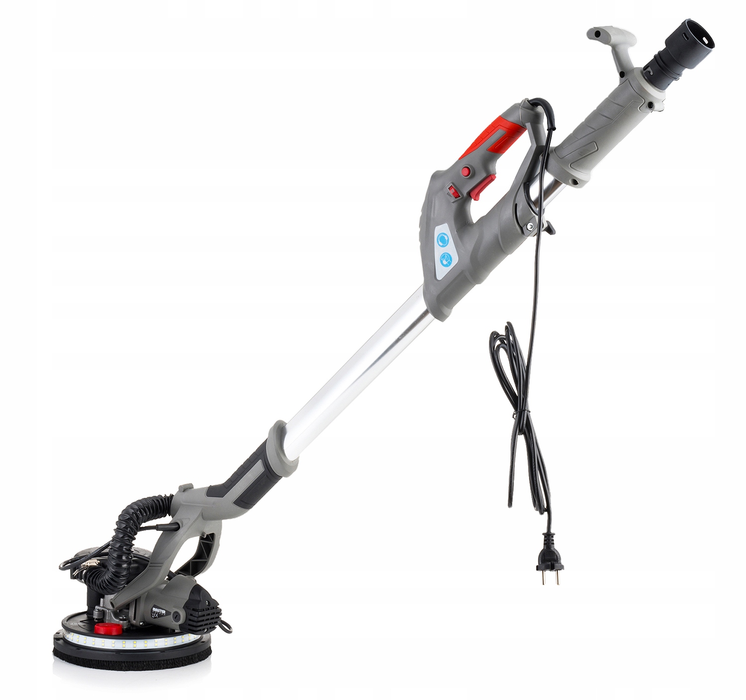 Устройство имеет телескопическую ручку, благодаря которой можно легко шлифовать даже в высоких помещениях.