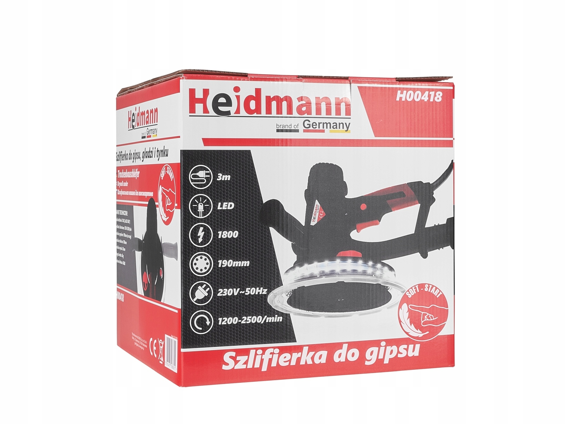 HEIDMANN - ШТУКАТУРНО-ШЛИФОВАЛЬНАЯ МАШИНА 1800 Вт LED + 56x БУМАГА