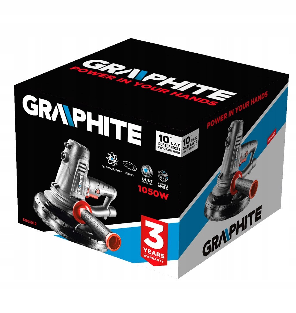 ▶ Высококлассная шлифмашина для гипса ГРАФИТ (арт. 59G262) мощностью 1050 Вт , предназначен для точной обработки штукатурных поверхностей. Шлифмашина оснащена прямым приводом шлифовального диска – в обход вала. Имеет возможность плавной регулировки вращающейся головки в диапазоне от 800 до 2300 об/мин.