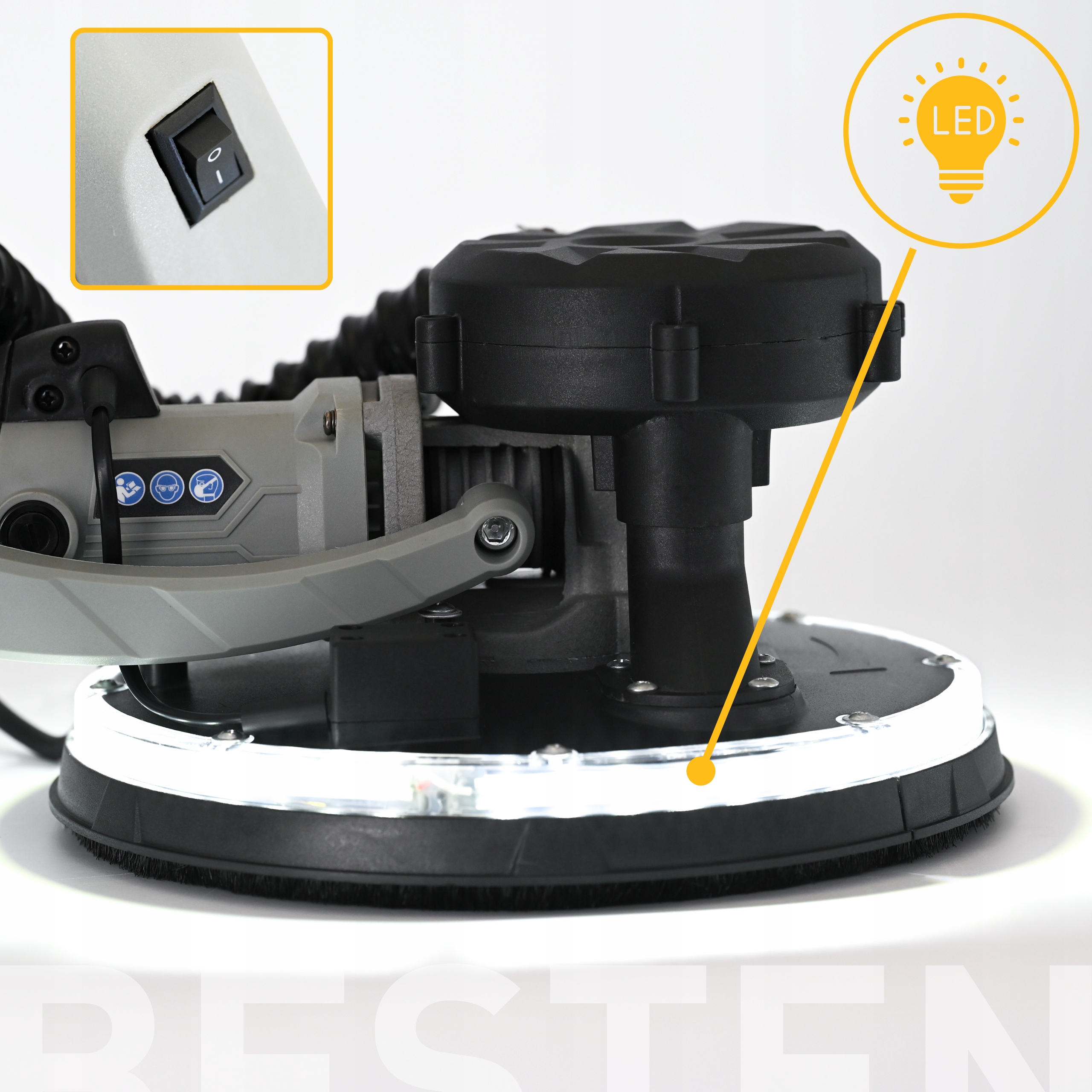 СВЕТОДИОДНАЯ ПОДСВЕТКА - Головка шлифовальной машины оснащена дополнительной подсветкой, подсвечивающей неровности и неровности. Мы легко можем получить идеально ровную поверхность.
