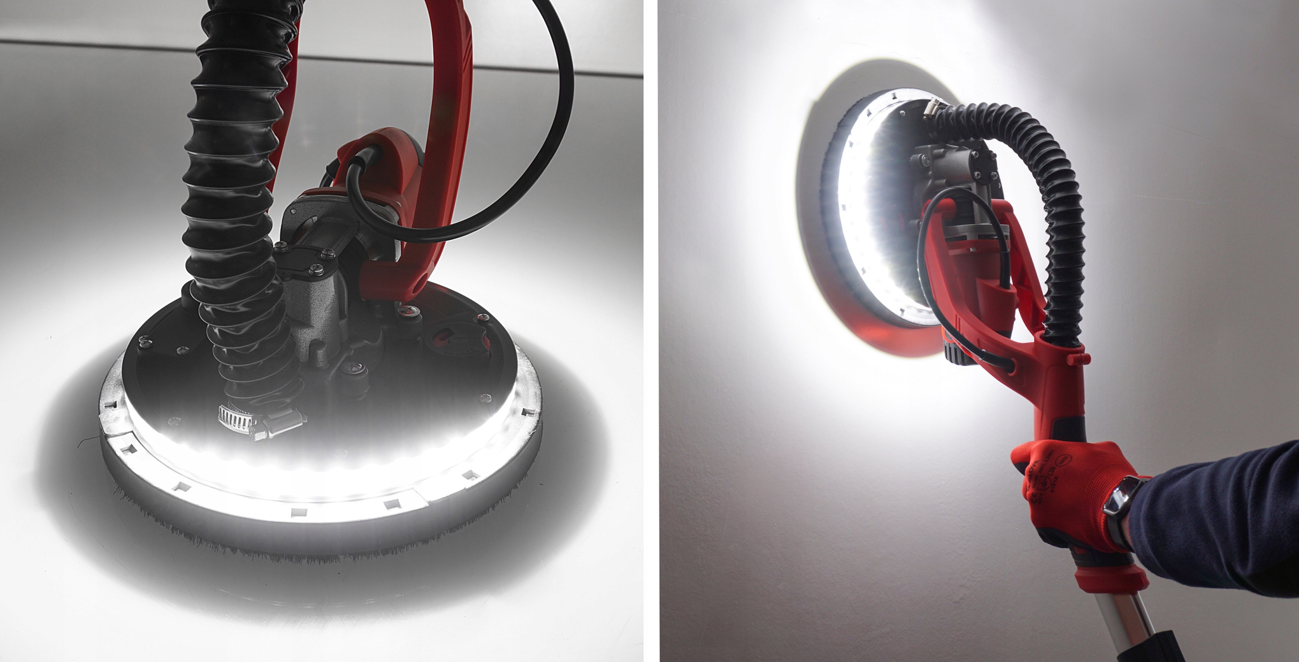 Модель N4226 оснащена регулируемой системой пылеудаления, благодаря которой пользователь может регулировать силу всасывания в зависимости от типа поверхности, интенсивности работы и рабочих предпочтений. Соответствующая регулировка позволяет минимизировать прилегание головки к стене, что обеспечивает плавное ведение инструмента и снижает сопротивление при шлифовке. Кроме того, он эффективно защищает устройство от пыли, а оператора от чрезмерного вдыхания пыли. Это ключевая функция, влияющая на эргономику, гигиену труда и долговечность оборудования.