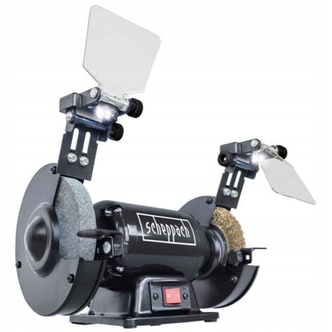 ДВУХДИСКОВАЯ НАСТОЛЬНАЯ ШЛИФОВАЛЬНАЯ СТАНКА НЕМЕЦКОЙ БРЕНДА SCHEPPACH, МОДЕЛЬ DG150GP/SM150LB BLACK EDITION, МОЩНОСТЬЮ 400 ВТ, В КОМПЛЕКТЕ СВЕТОДИОДНАЯ ЛАМПОЧКА, ШЛИФОВАЛЬНЫЙ ДИСК K36 И ПРОВОЛОЧНАЯ ЩЕТКА
