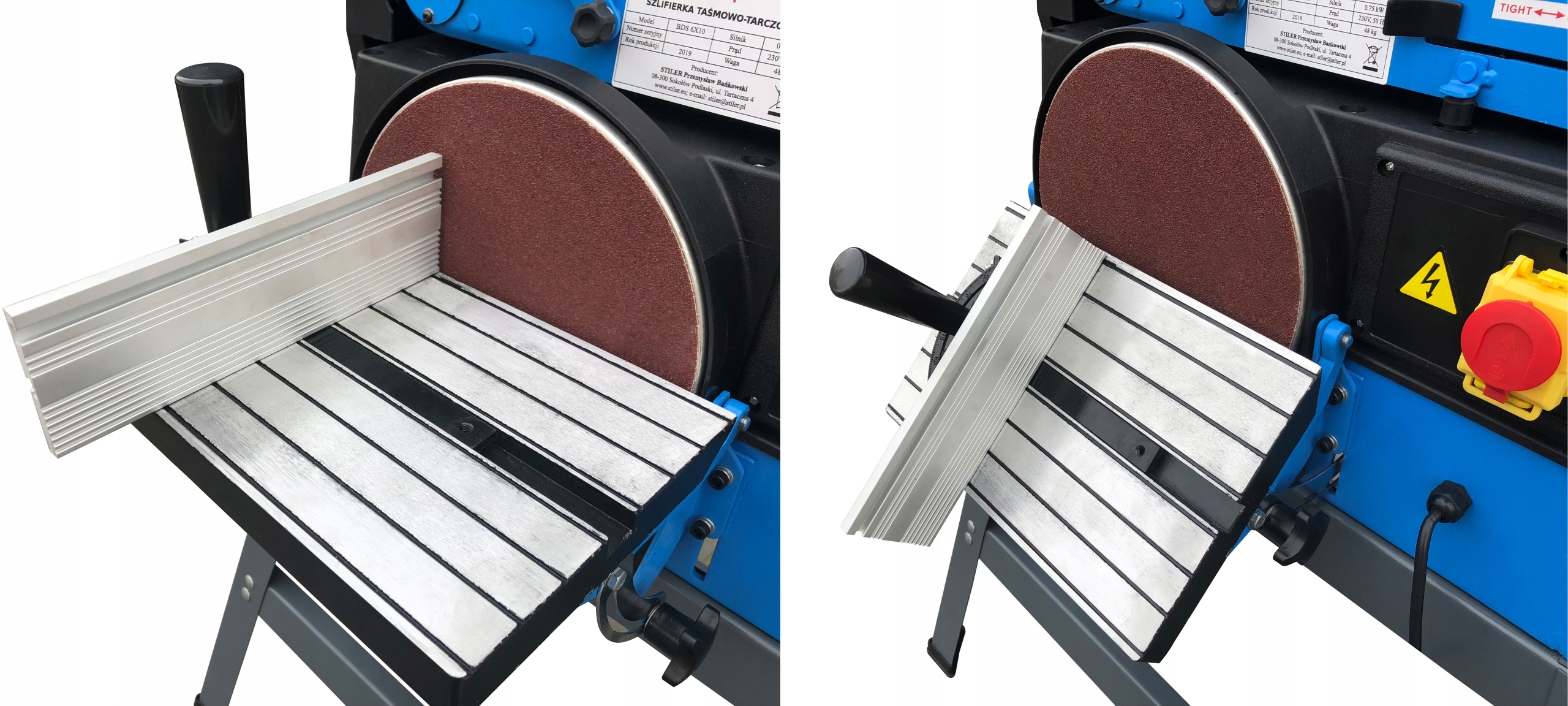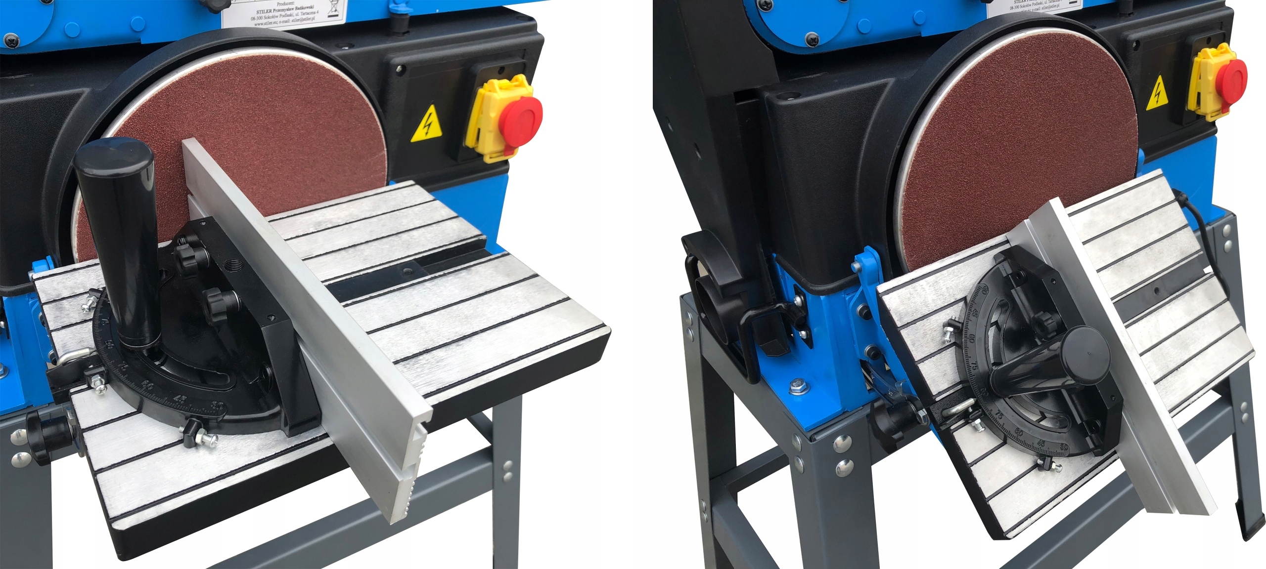 Удобный угловой стол с точной направляющей позволяет шлифовать кромки под любым углом.