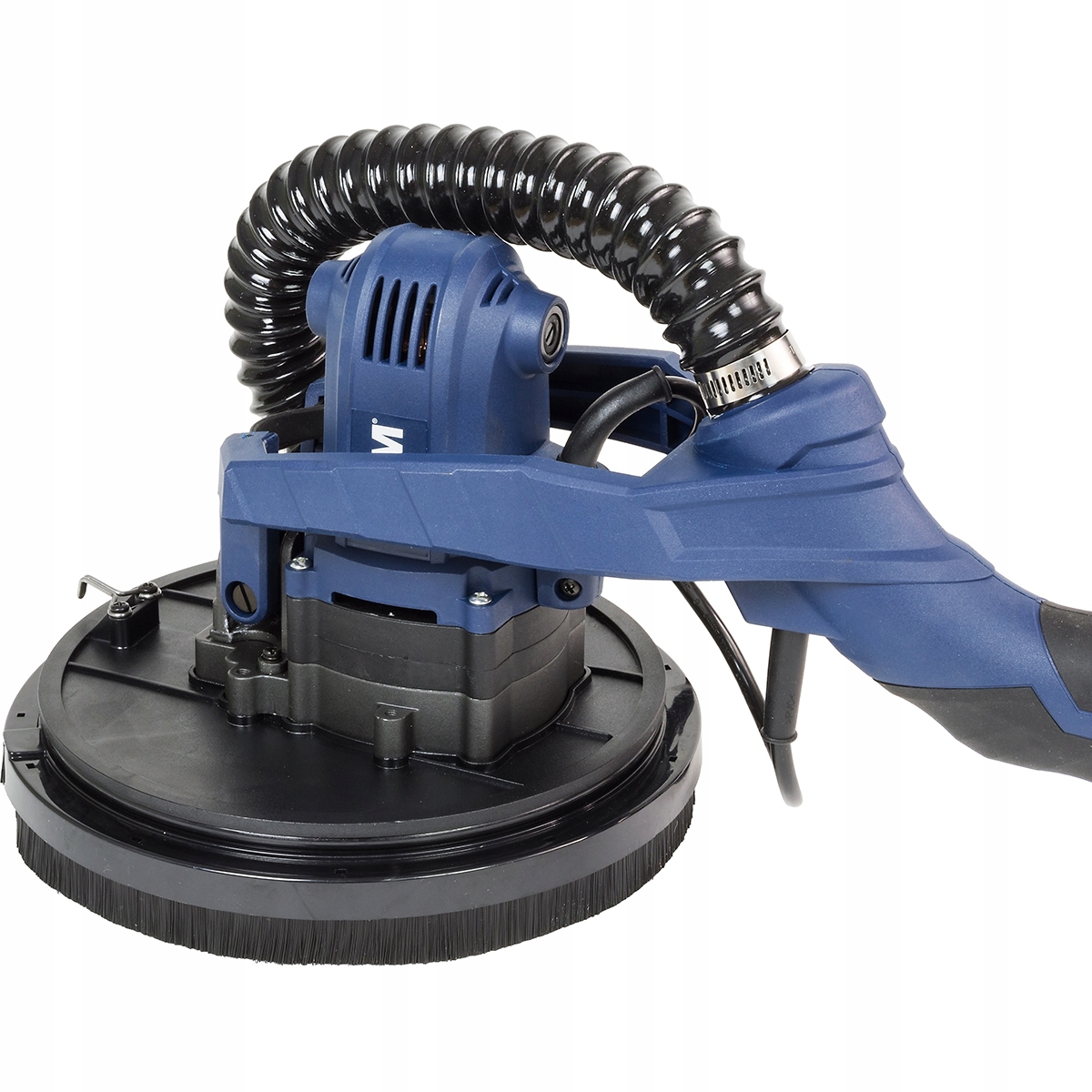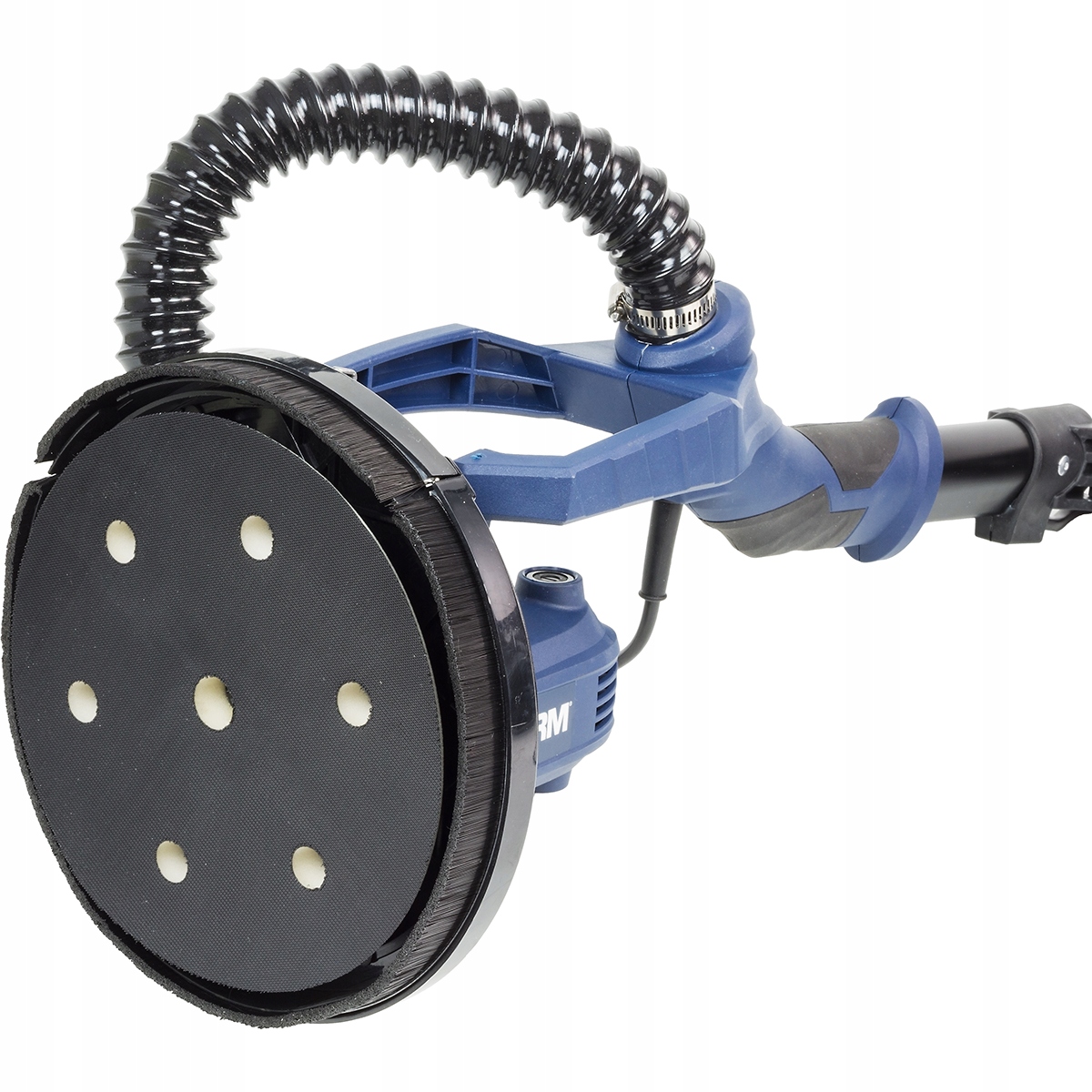 Кроме того, шлифовальная машина имеет регулировку угла наклона головки, телескопическую ручку, позволяющую регулировать ее длину в зависимости от высоты и высоты помещения, длинный удобный кабель питания и система быстрой замены шлифовальных дисков (липучка). В комплект также входят абразивные диски - 2х Р60, 2х Р120 и 2х Р240.