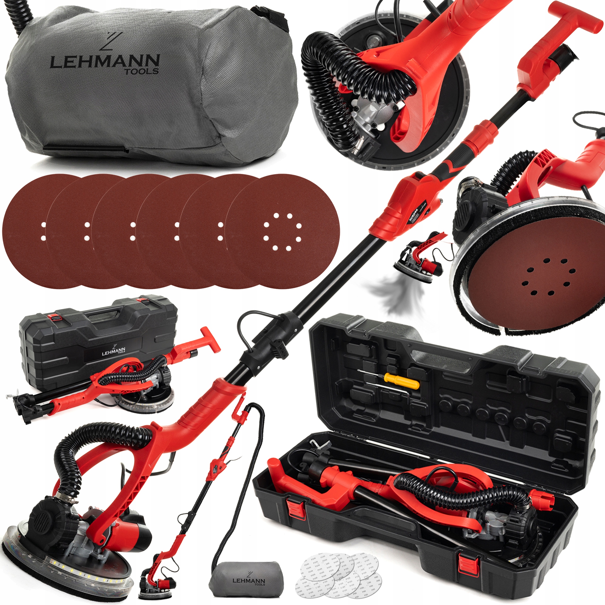 Новейшая финишно-шлифовальная машина Lehmann Auroreзаменит в вашей работе целых три устройства. Шлифует, освещает и поглощает пыль, гарантируя потрясающие результаты и более быструю работу. Первая подобная шлифовальная машина, оснащенная новейшими технологиями, благодаря которым вы не только достигнете самых высоких мест, но и теперь увидеть их в специальном светодиодном рабочем освещении на 360 градусов b>. Вы быстрее закончите выравнивать стены и дышите чистым воздухом благодаря тому, что шлифовка помещается в специальный фильтр-мешок, а все это можно надежно упаковать в жесткий кейс Lehmann. В наборе вы получите все необходимые аксессуары!