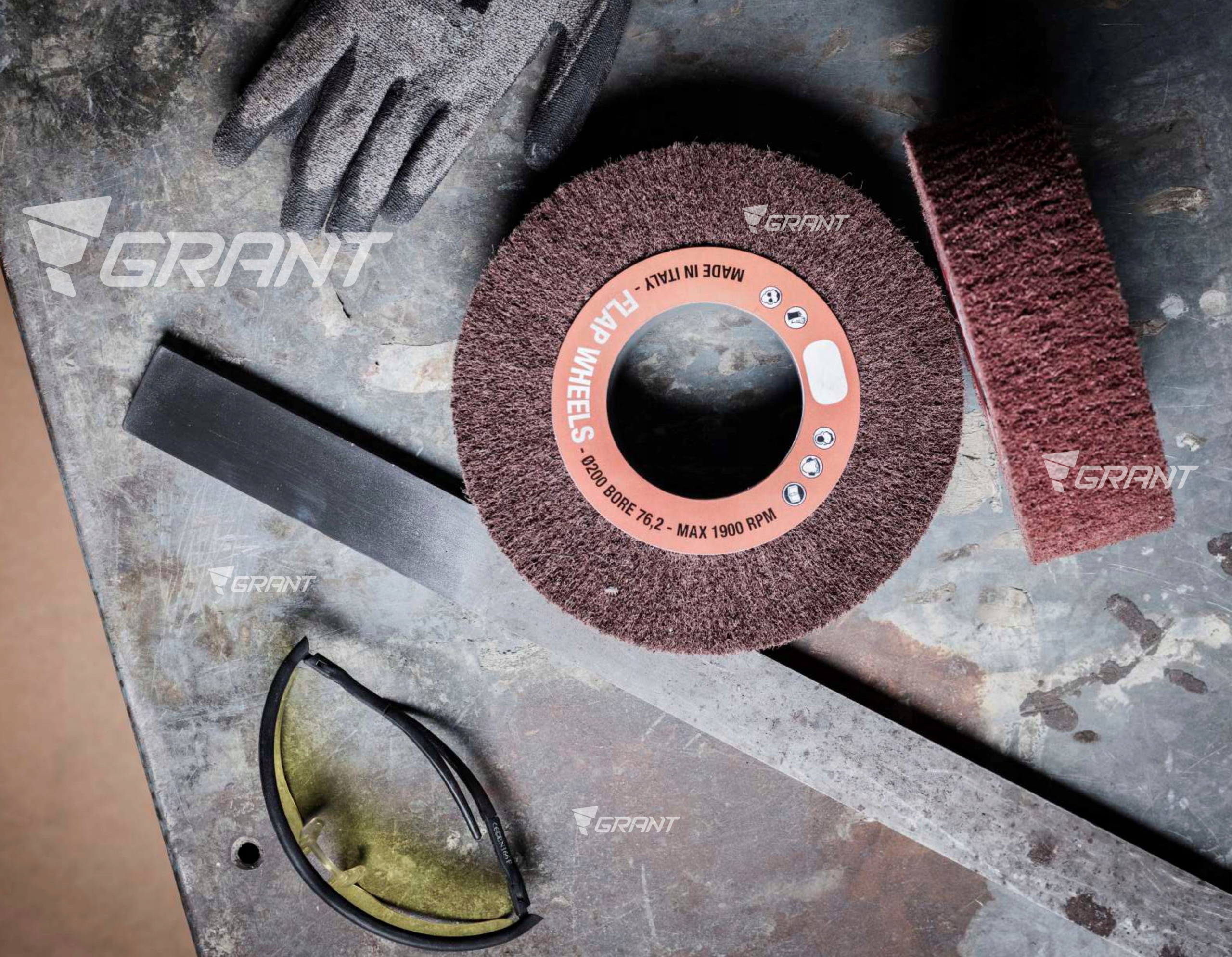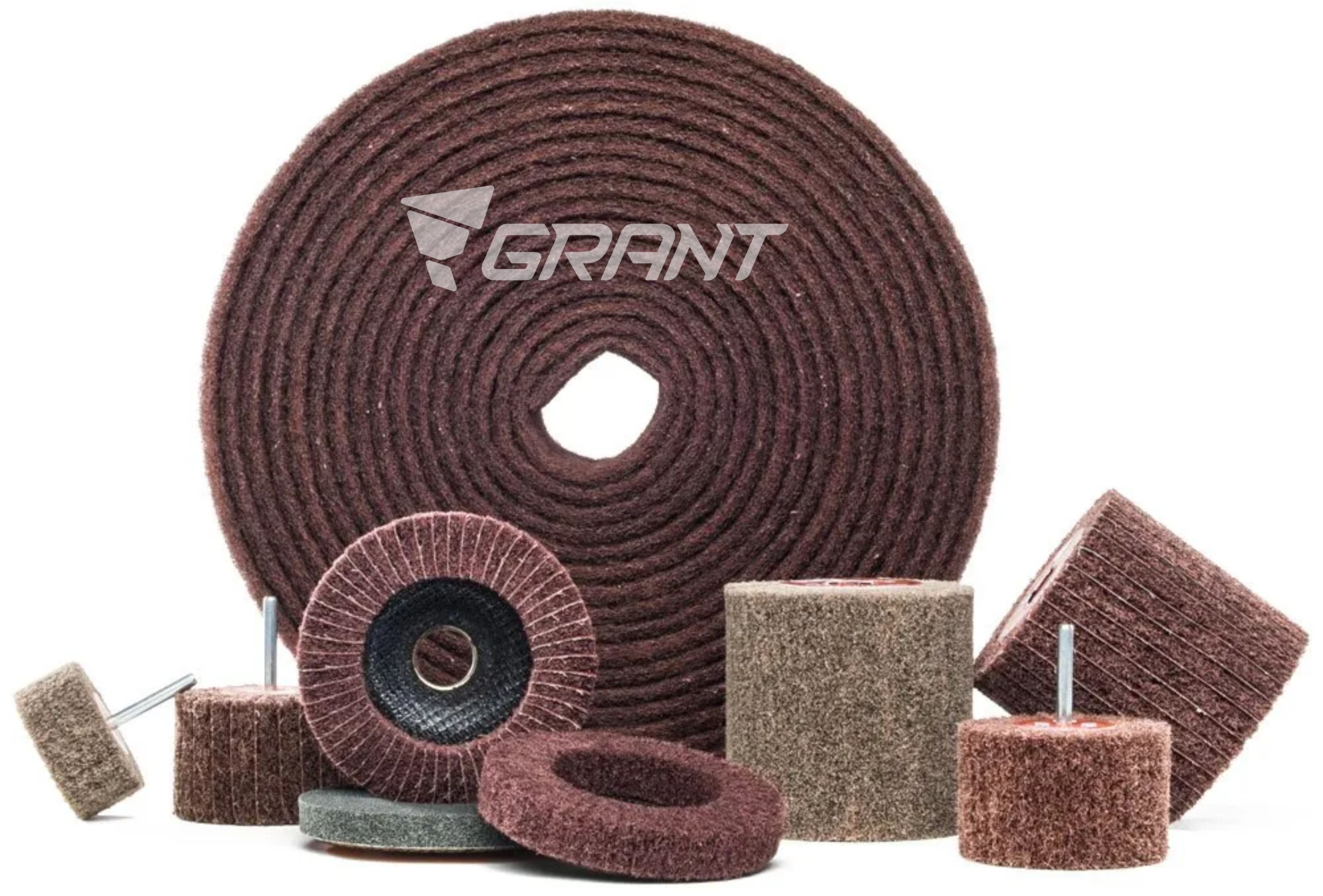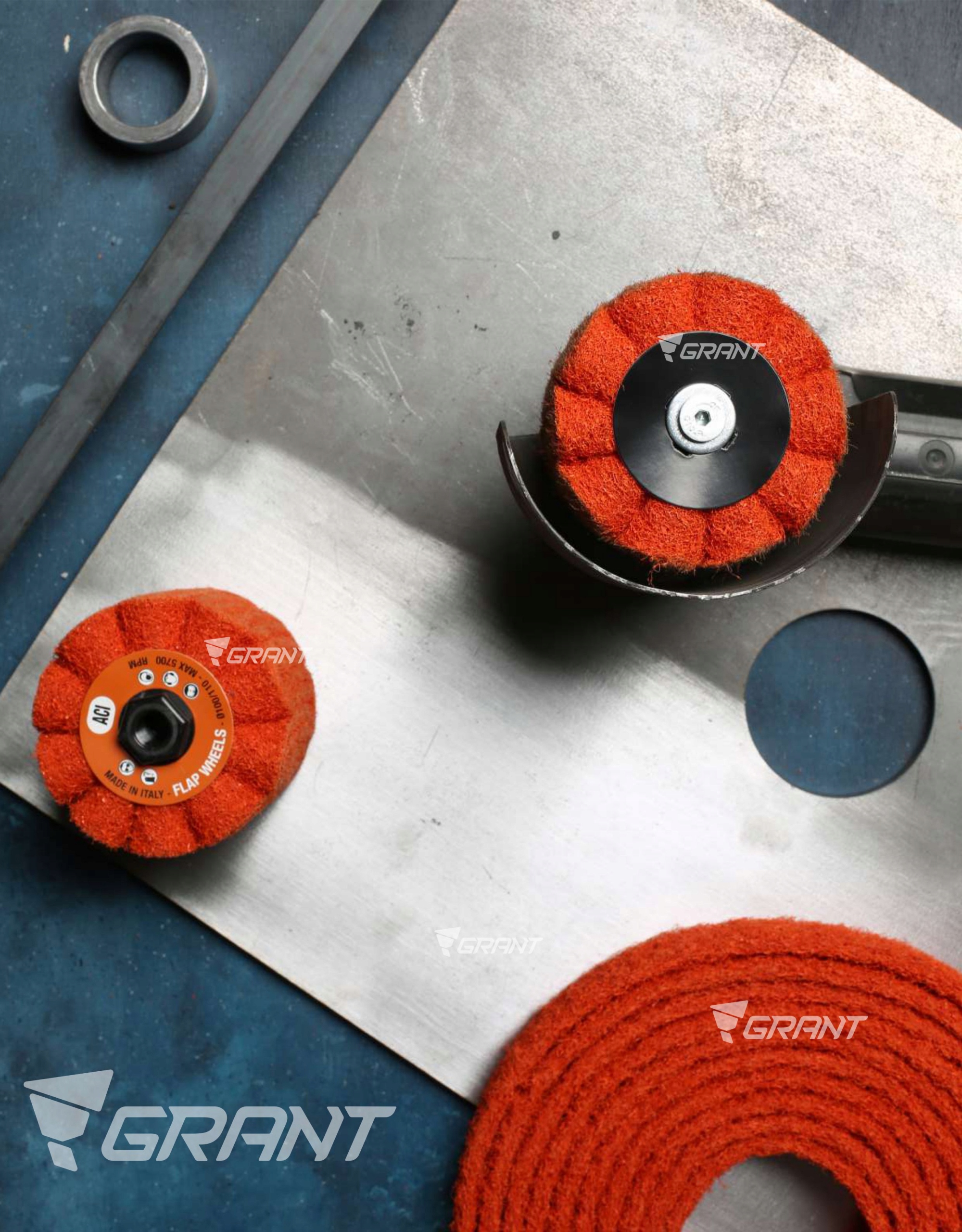 Круги состоят из нетканых абразивных лепестков, расположенных радиально вокруг волокна или сердечника из другого материала, и применяются в стационарных автоматических или полуавтоматических машинах. Они особенно подходят для сатинирования и матирования металлов, а также используются в керамической и деревообрабатывающей промышленности.