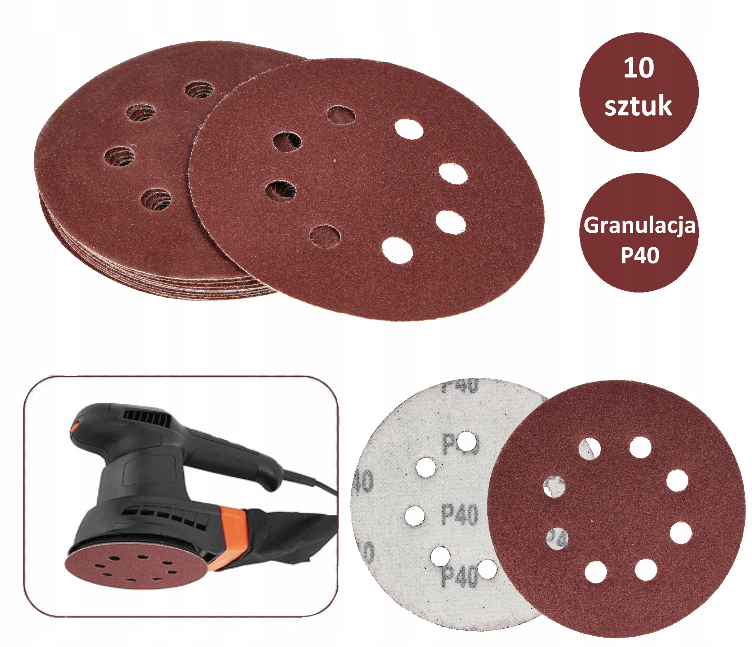 ШЛИФОВАЛЬНАЯ БУМАГА 125 ДЛЯ ШЛИФОВАЛЬНЫХ ДИСКОВ С ОТВЕРСТИЯМИ P40 x10